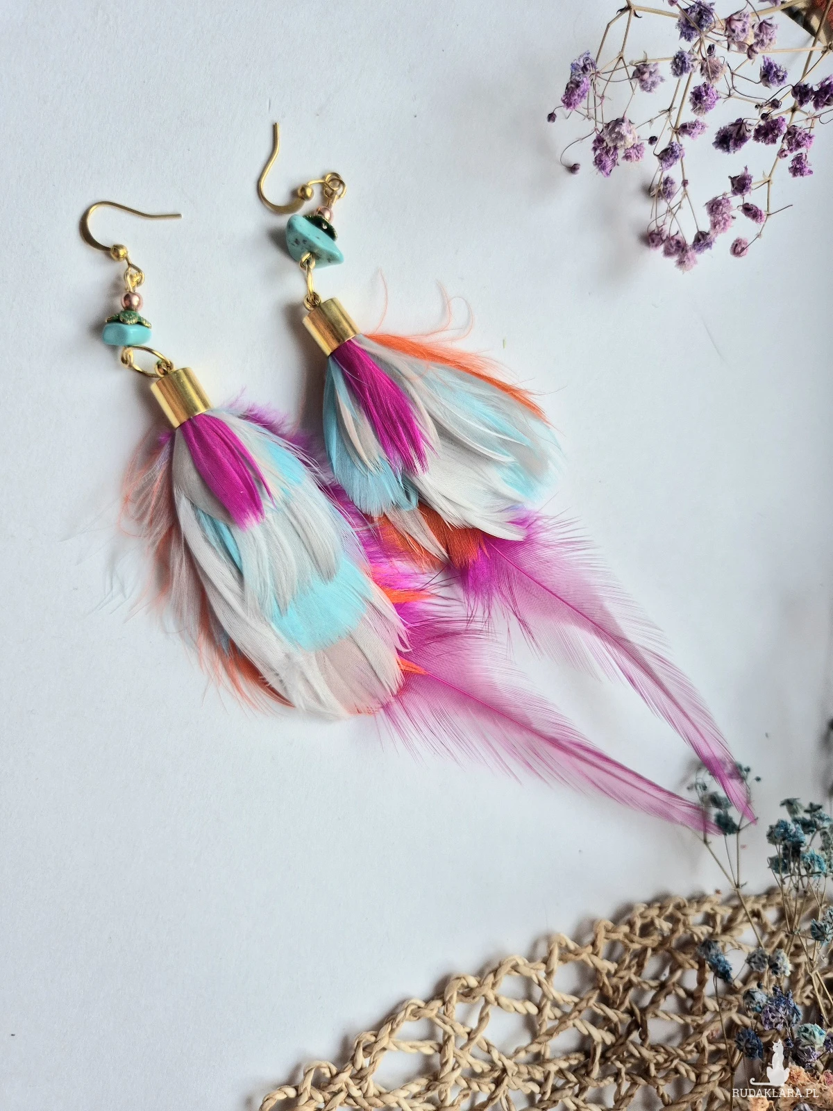 Kolczyki Boho amarantowe kolorowe szalone długie  przepiękne leciutkie bardzo zwracają uwagę robione ręcznie, obłędne kolory polecam