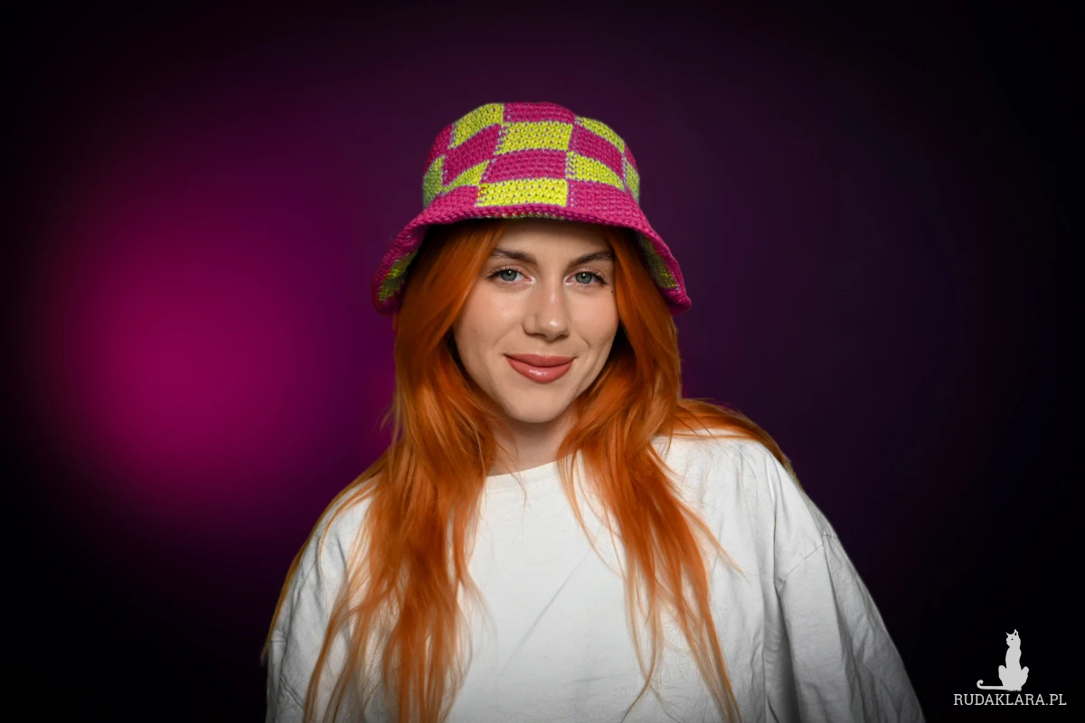 Do tego dochodzi bucket hat w kolorach dragonfruit i lime green, soczysta mieszanka, która od razu poprawia humor!