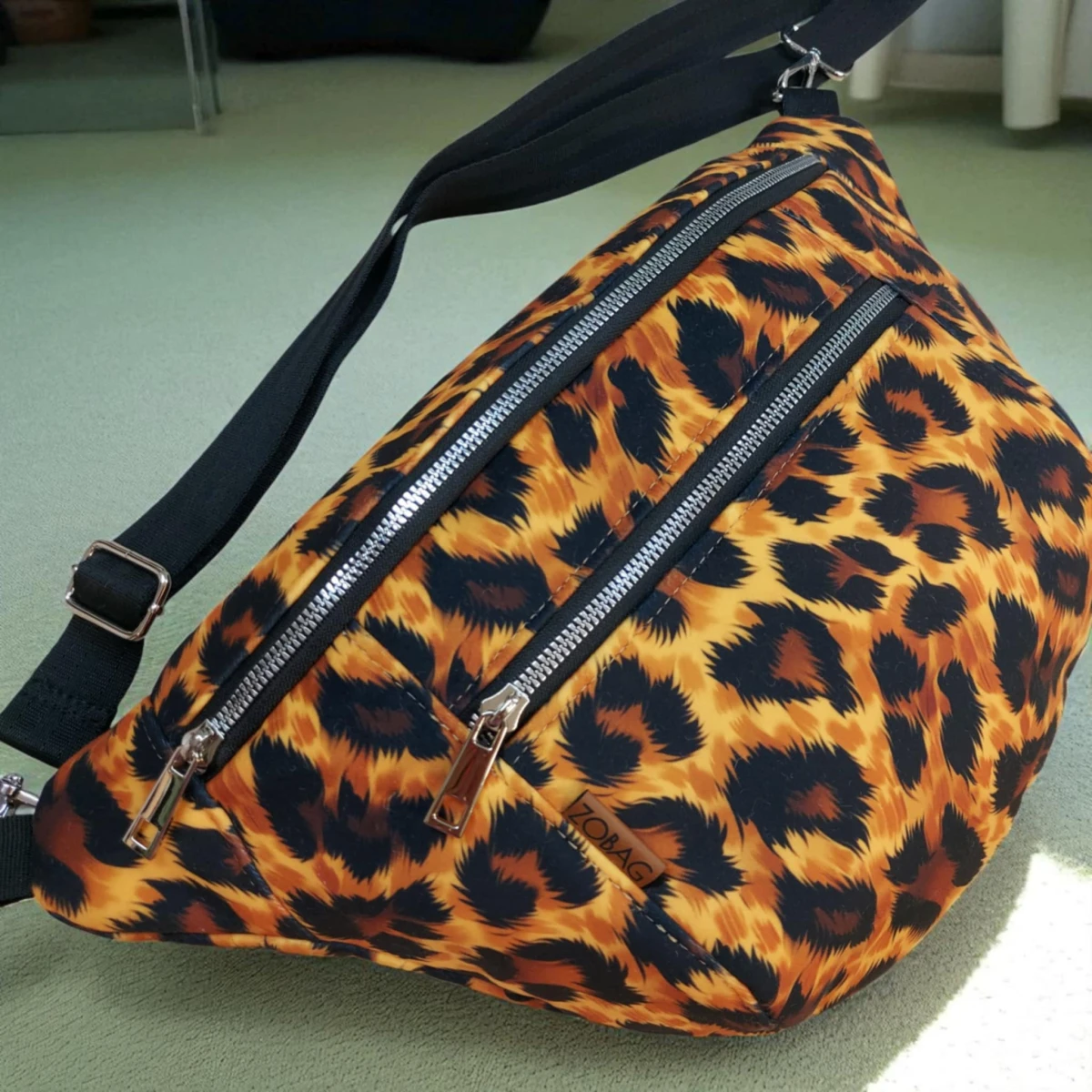Saszetka-nerka uszyta z weluru, wzór panterka odcienie brązu i czarnego.
