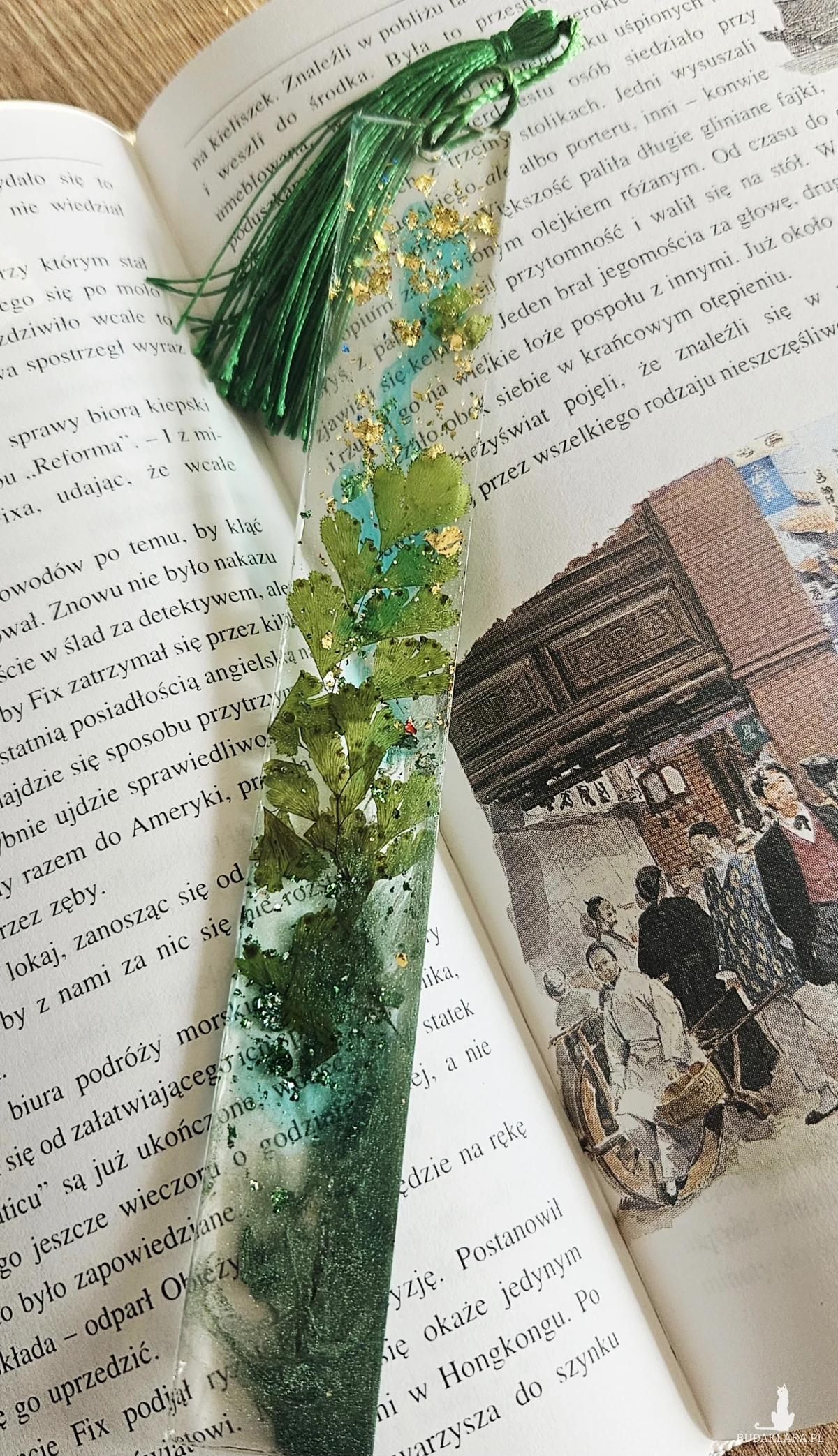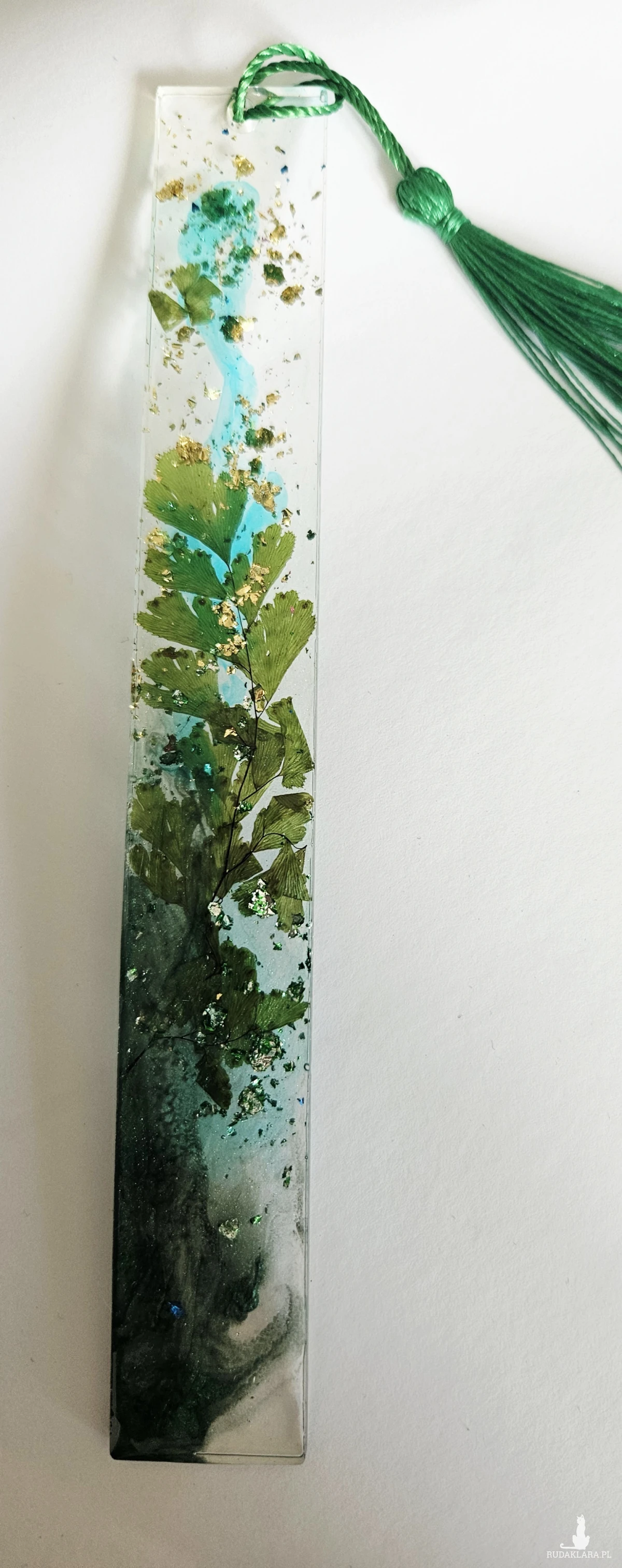 Zakładka z żywicy epoksydowej z losciwm paproci turkus i zieleń D16