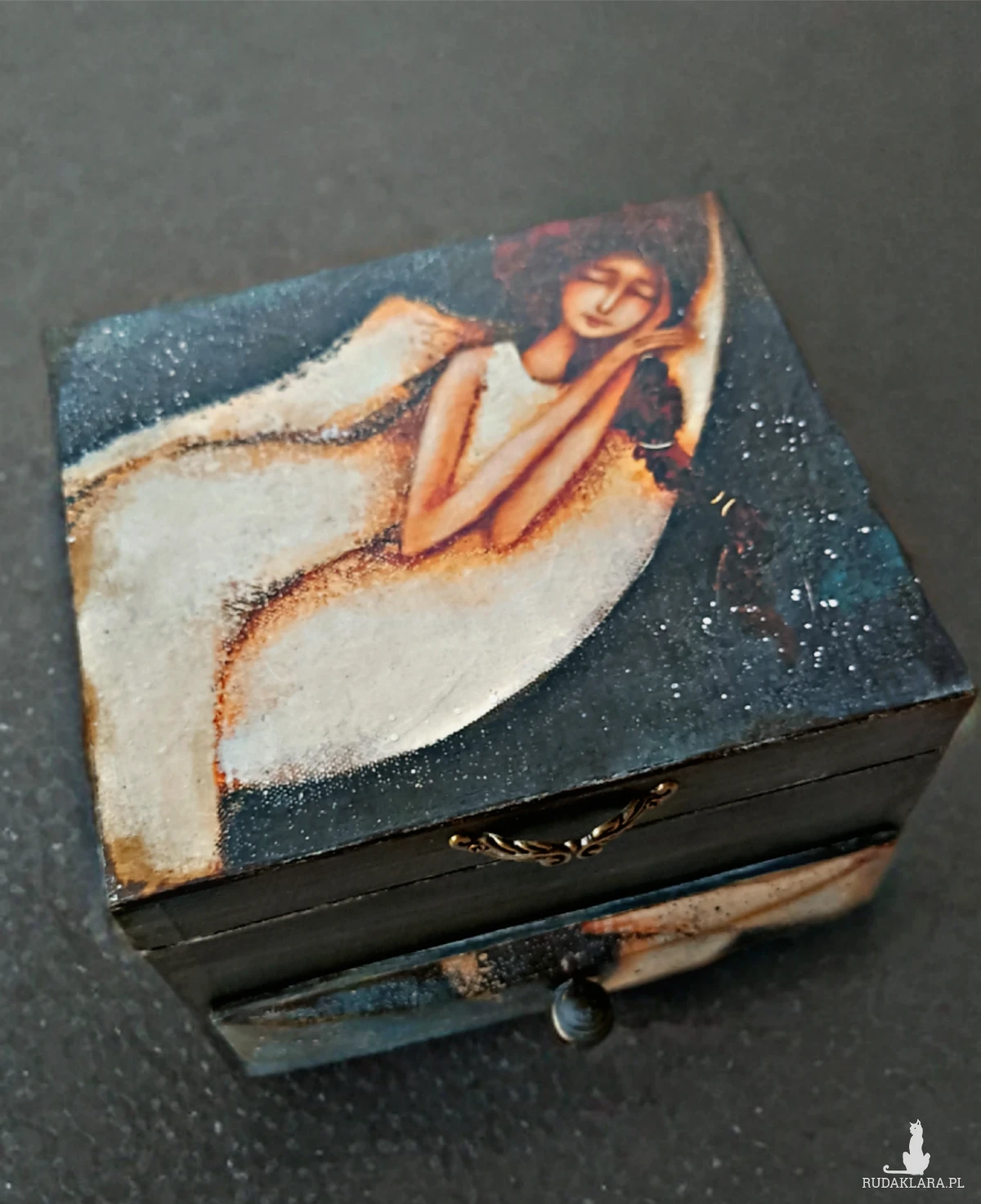 Ozdobiona za pomocą techniki decoupage.