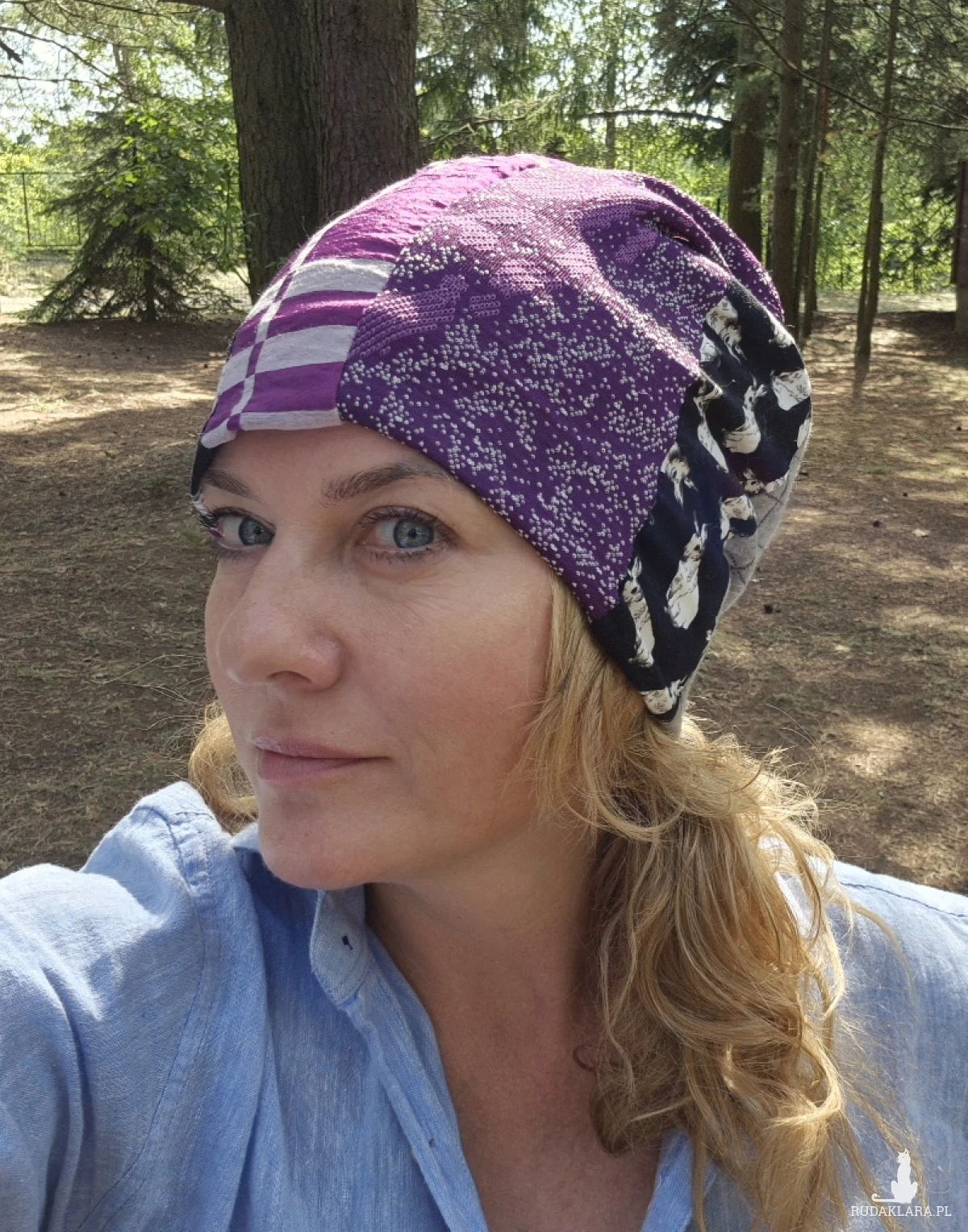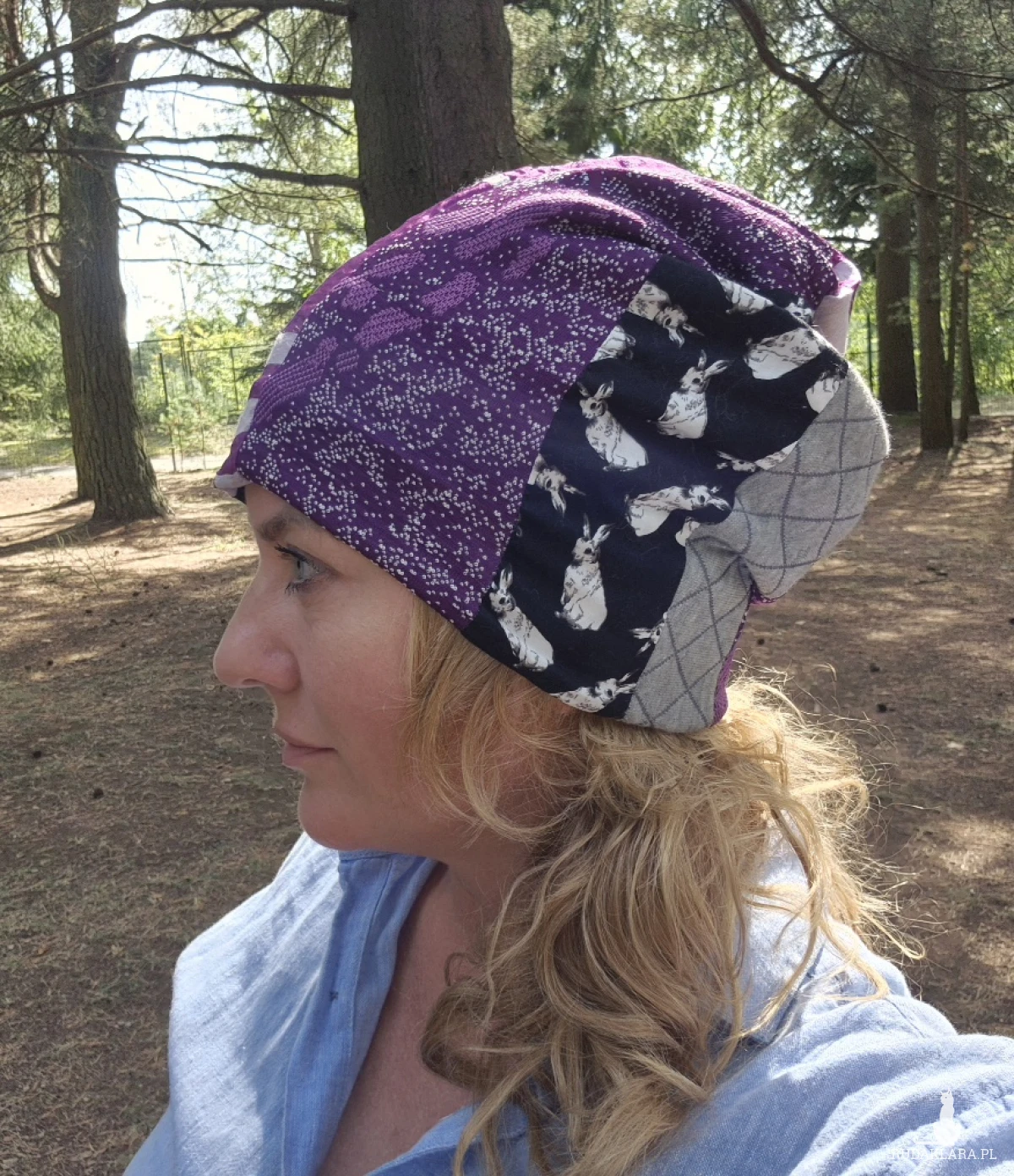 Czapka damska na podszewce dobra na codzienne noszenie rozmiar M miękka kolorowa zwracająca uwagę polecam szyta ręcznie box a1