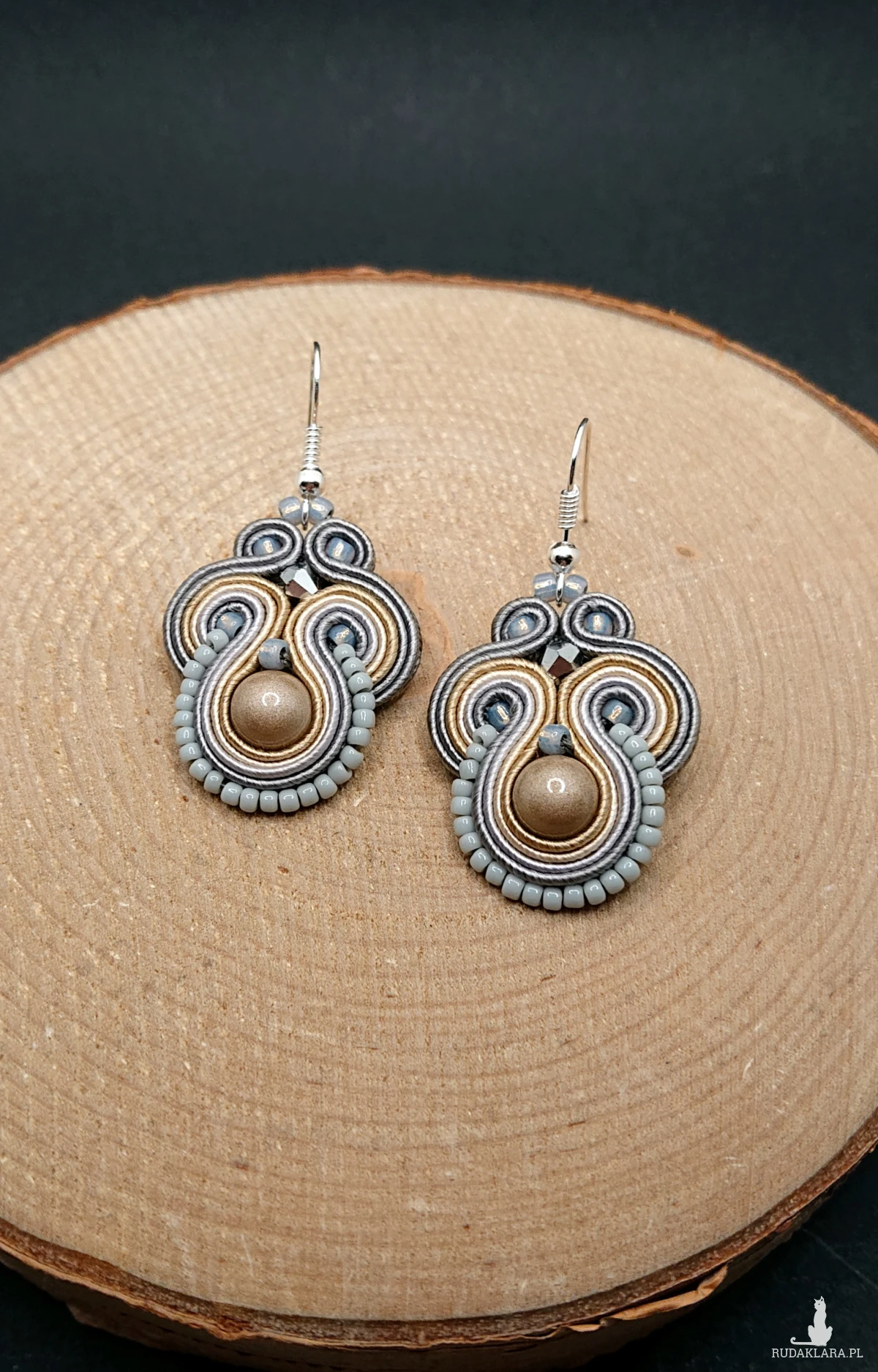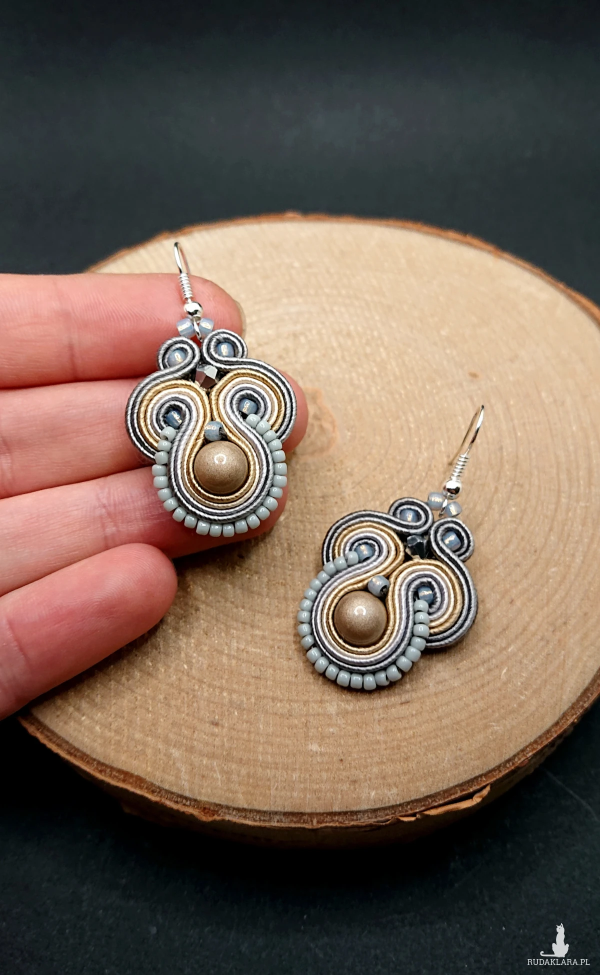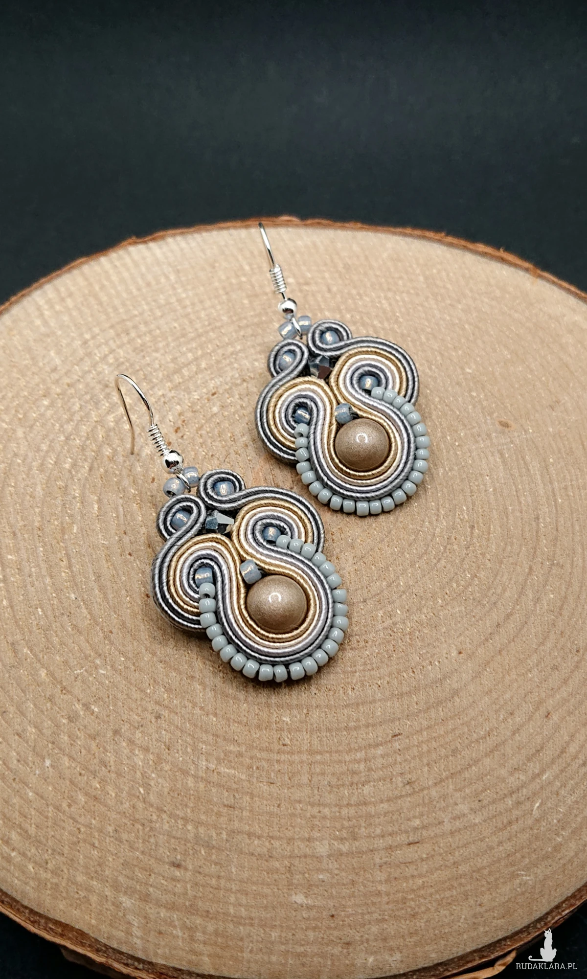 Beżowo-szare kolczyki sutasz