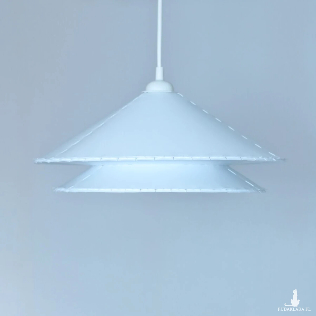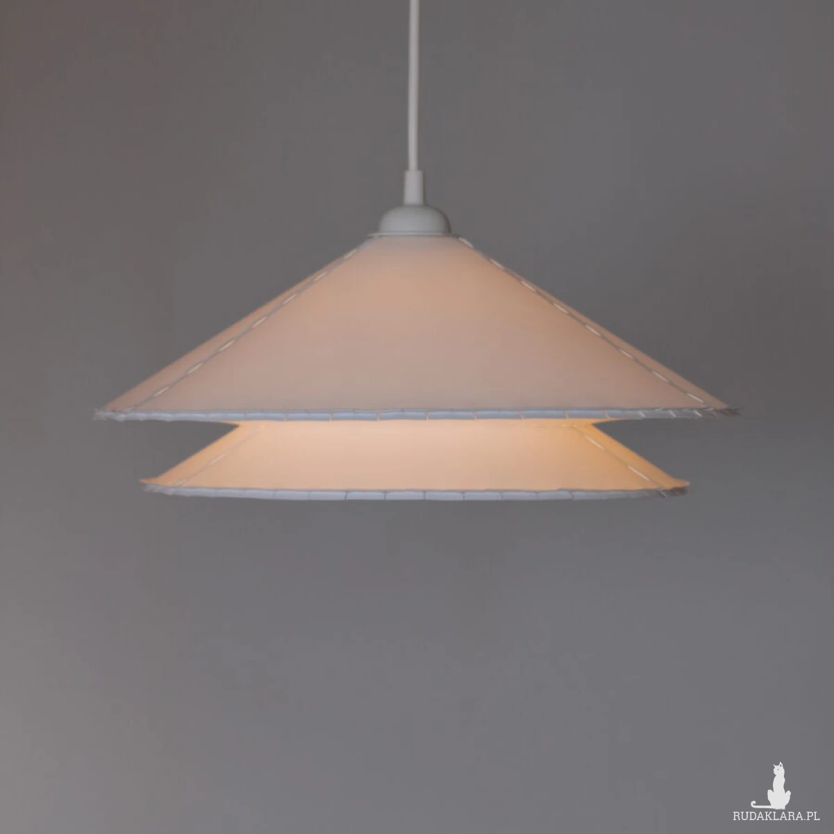 Abażur jest wykonany z jednolitej białej folii PP (z tego tworzywa robi się np. nakrętki do butelek plastikowych), bez dodatku szkodliwych substancji takich jak: żywice, rozpuszczalniki, barwniki czy kleje.