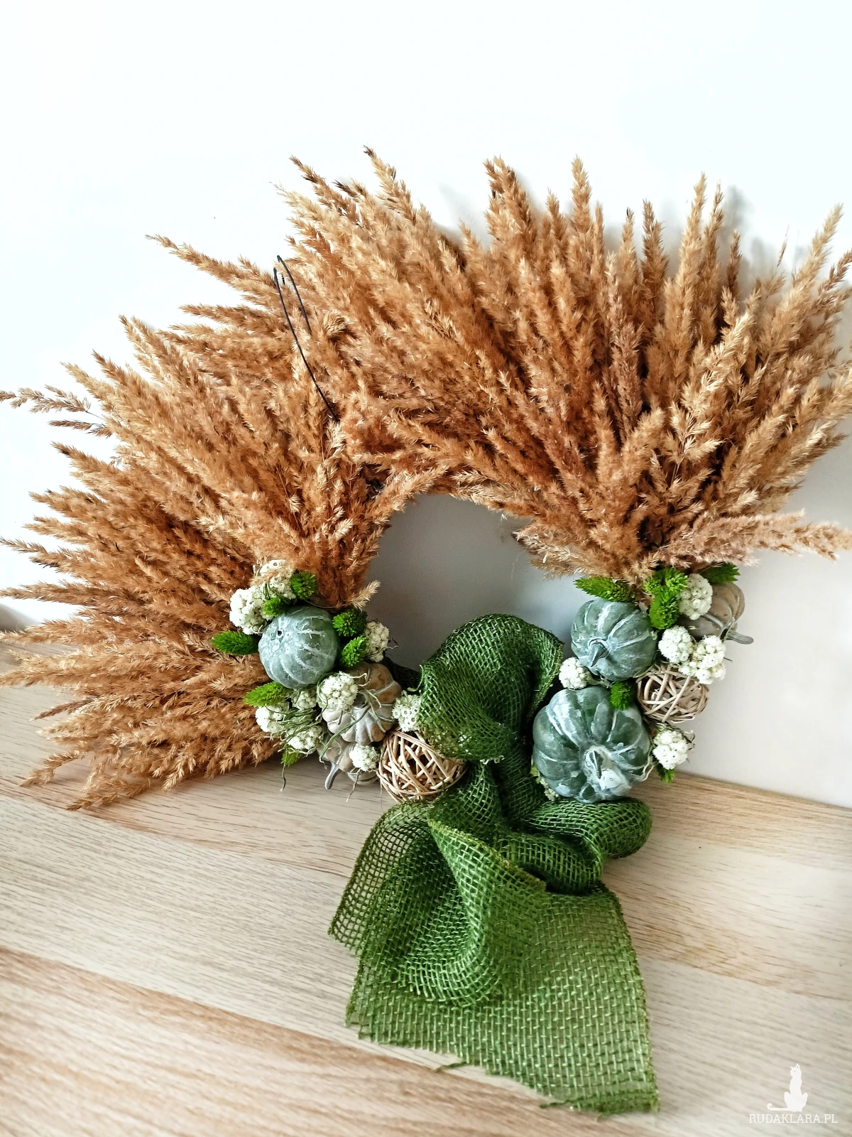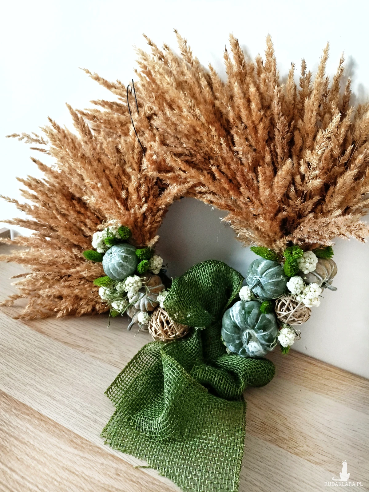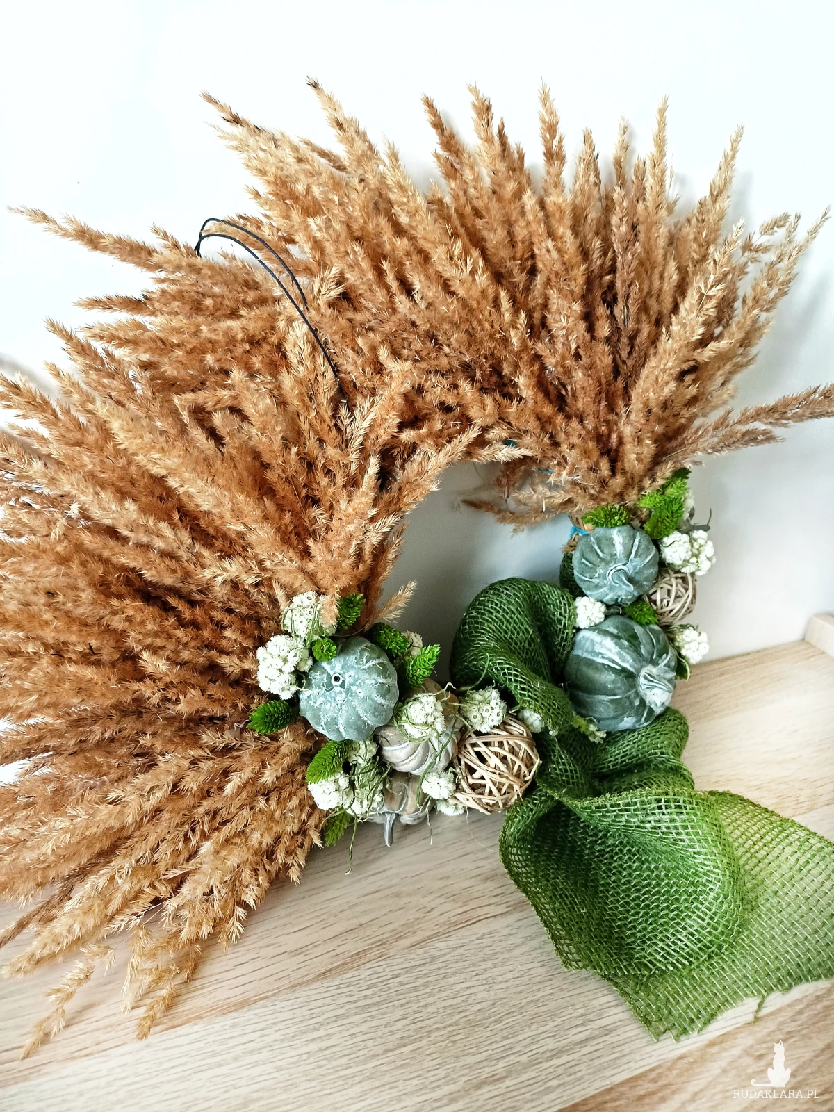 jesienny wianek na drzwi • wianek z suszonych kwiatów • wianek jesienny handmade • dekoracja jesienna z dyniami • wianek rustykalny na ścianę • stroik na stół jesień • naturalny wianek boho • dekoracja ze słomy • wianek z suszonych traw • ozdoba jesienna do domu • wianek z dyniami na drzwi
