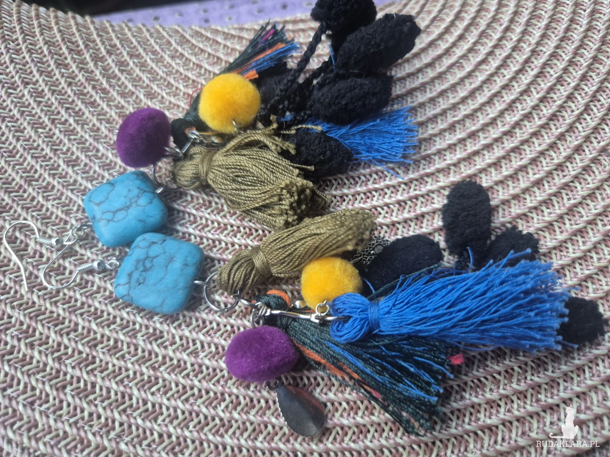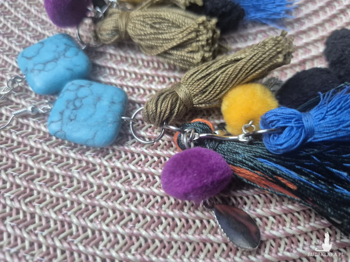 Kolczyki zwariowane kolorowe z pomponami i chwostami,polecam box x1