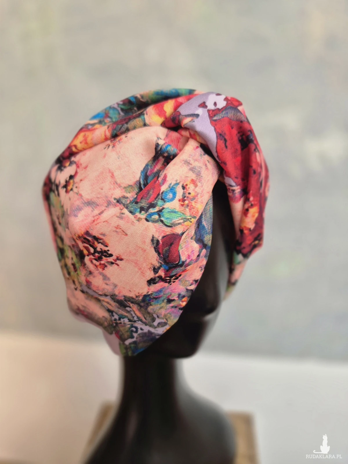 Turban kolorowy etno orient milutki uniwersalny, zalecany dla artystek, wizjonerek, prowokatorek i matek które już widzą światełko w tunelu, dla wyzwolonych kotek z wyobraźnia, dla pań bez wyobraźni NIE , box d1