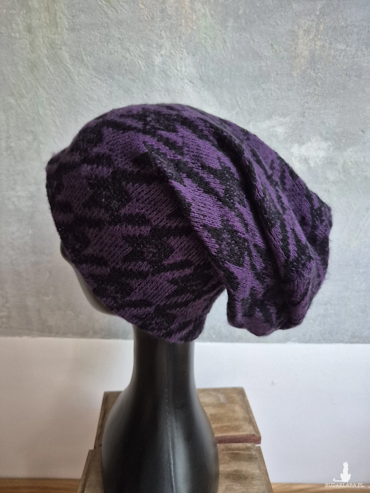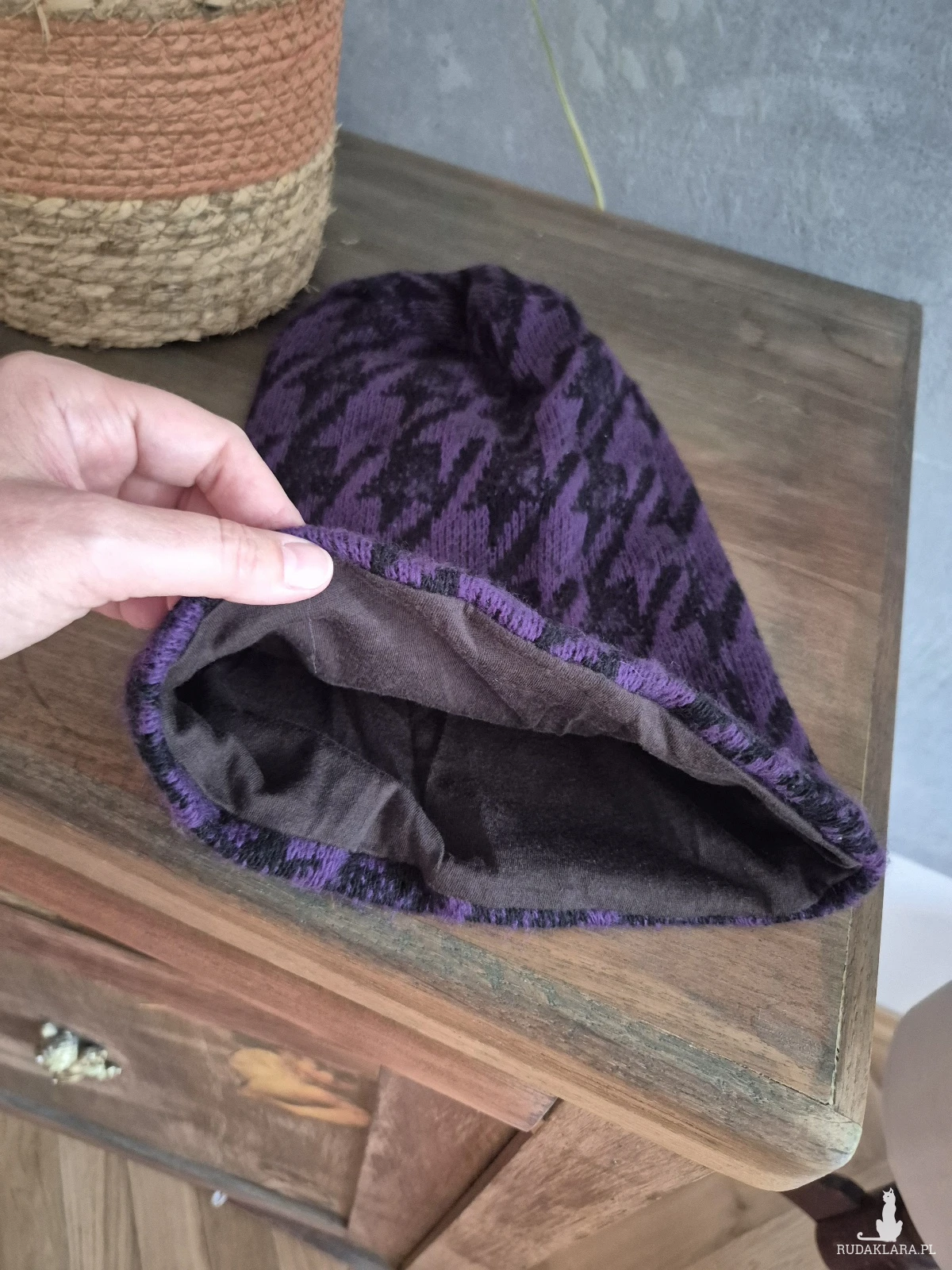 Czapka fioletowa na podszewce dobra na codzienne noszenie rozmiar uniwersalny rozciągliwa mega oryginalna szyta ręcznie polecam box d1