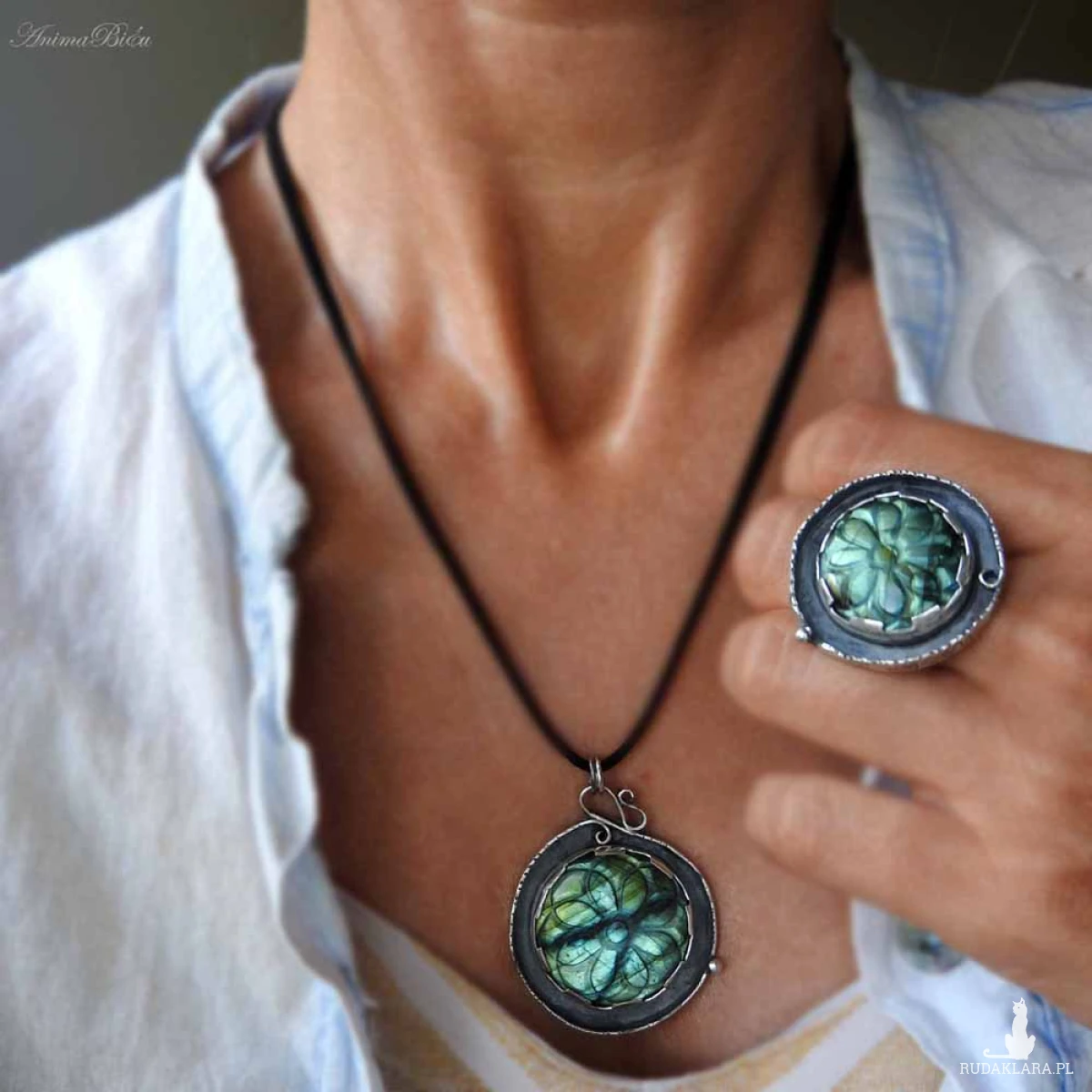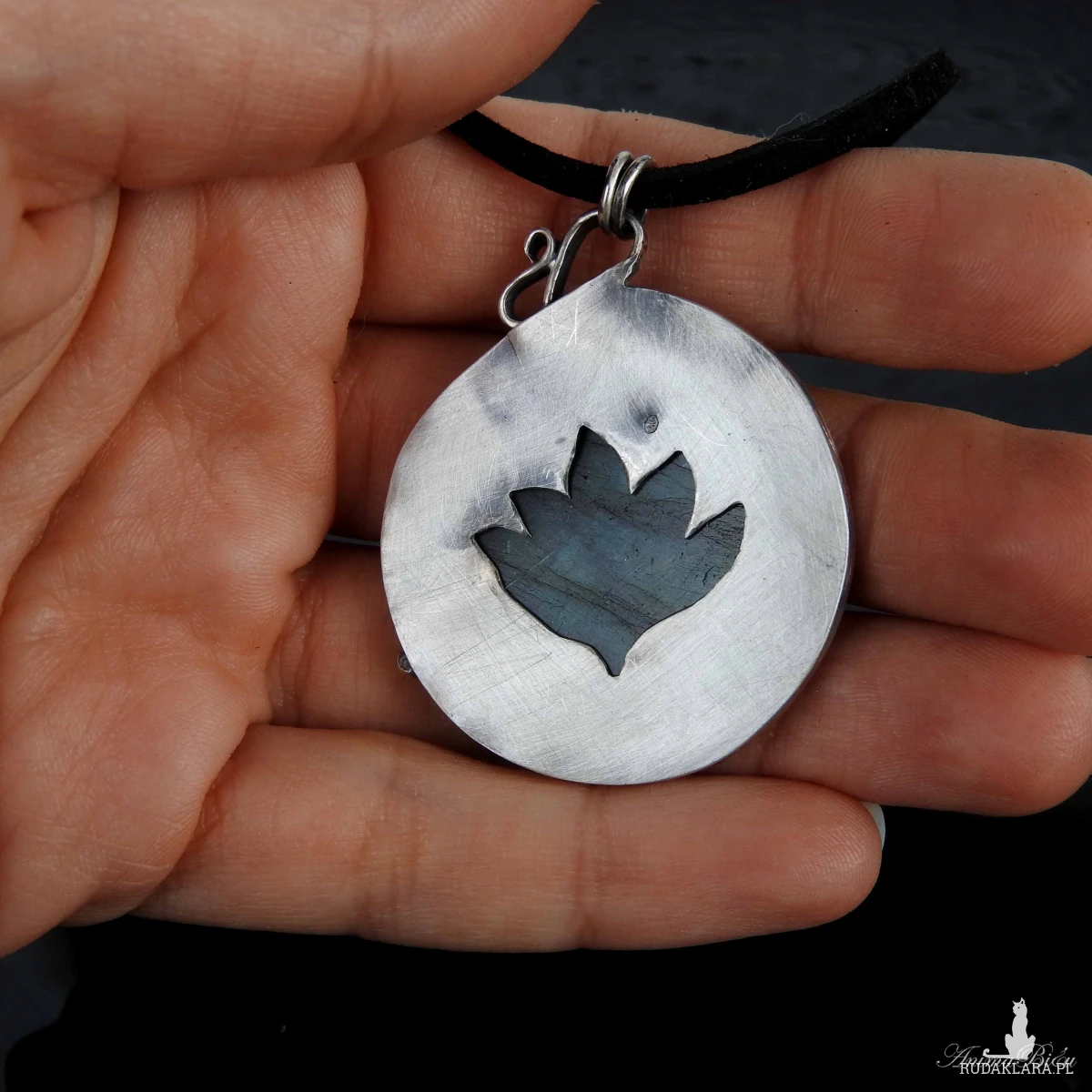 oprawiłam ręcznie w srebro próby 925 i 999, tworząc tajemniczy wisior o