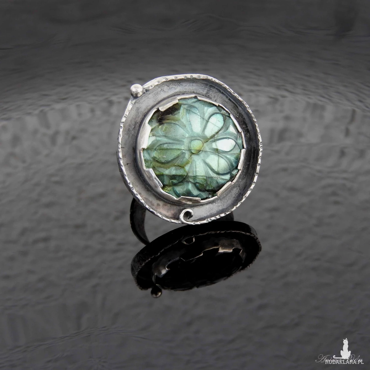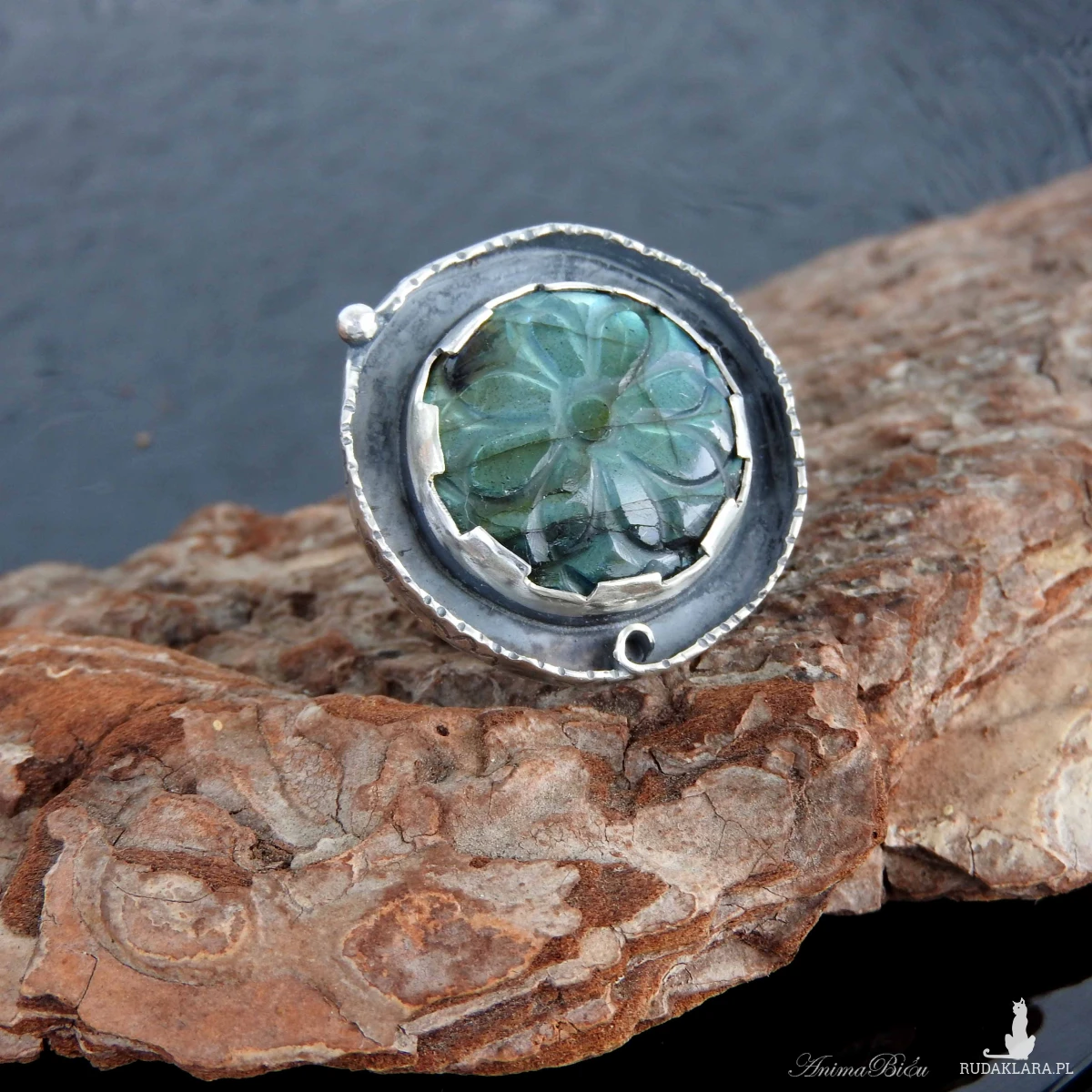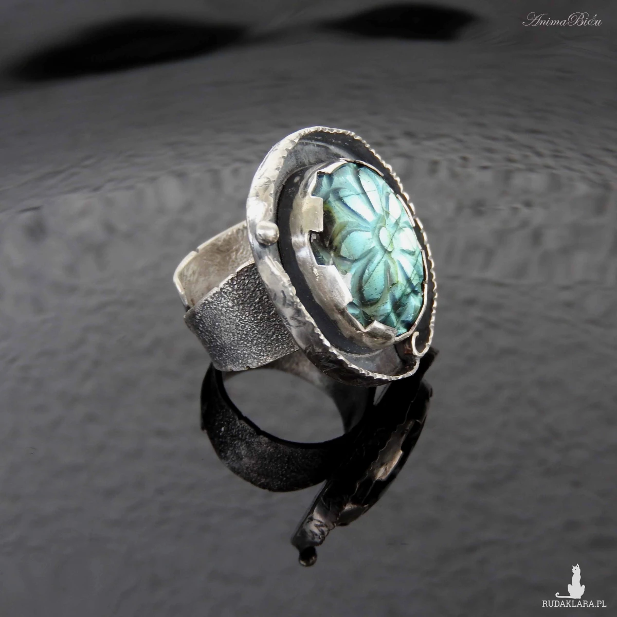 oprawiłam ręcznie w srebro próby 925 i 999, tworząc tajemniczy pierścień o