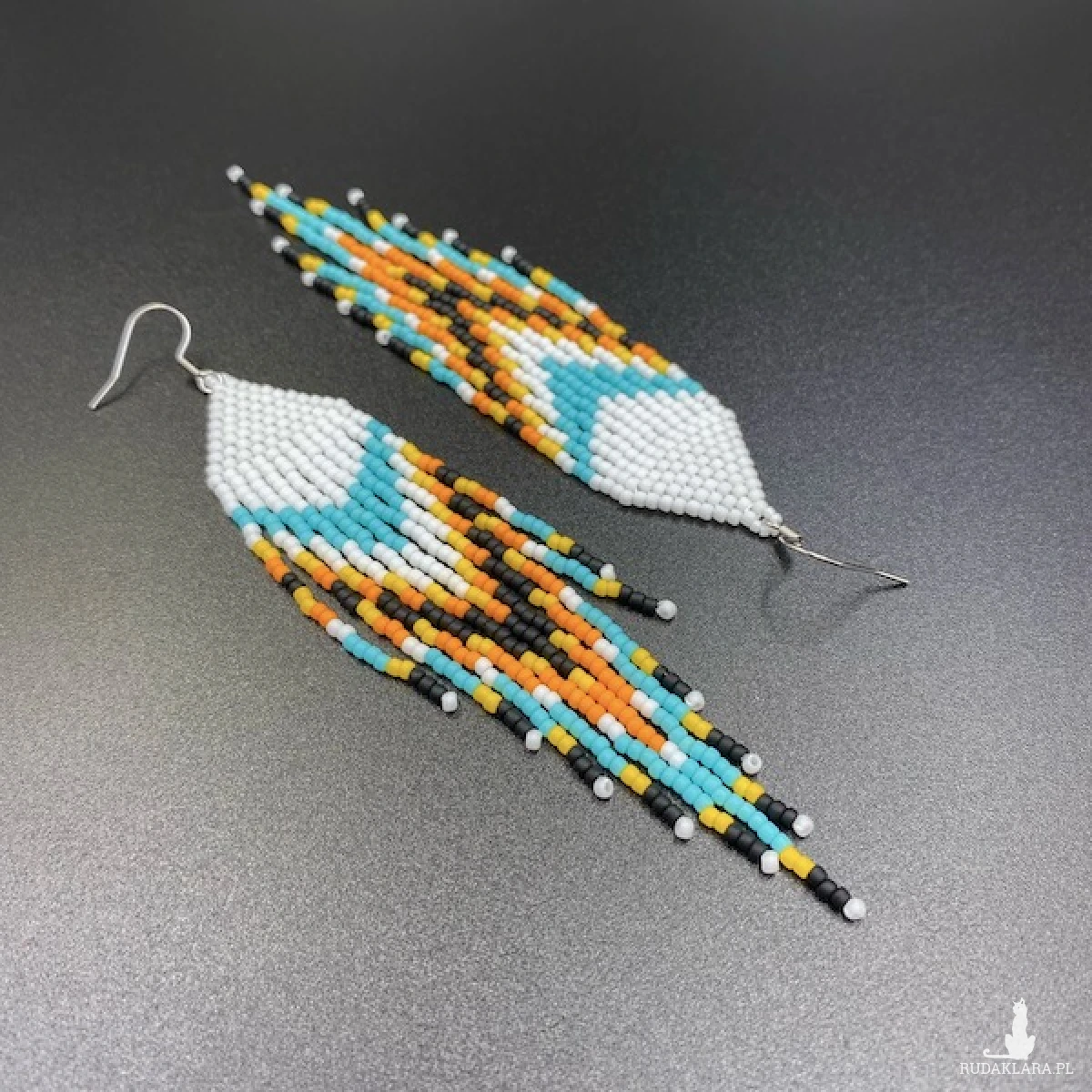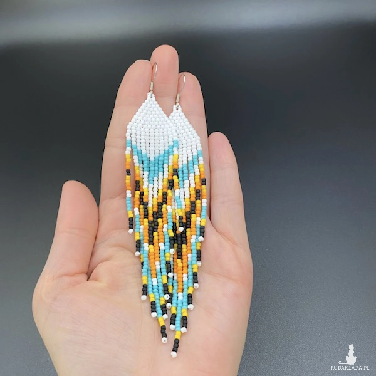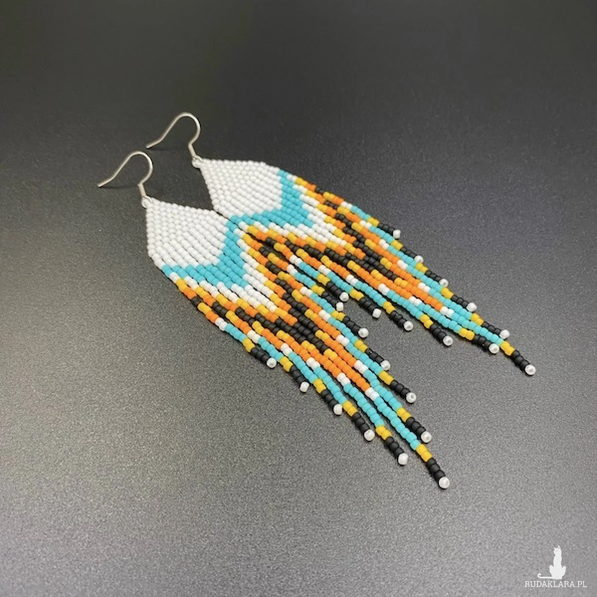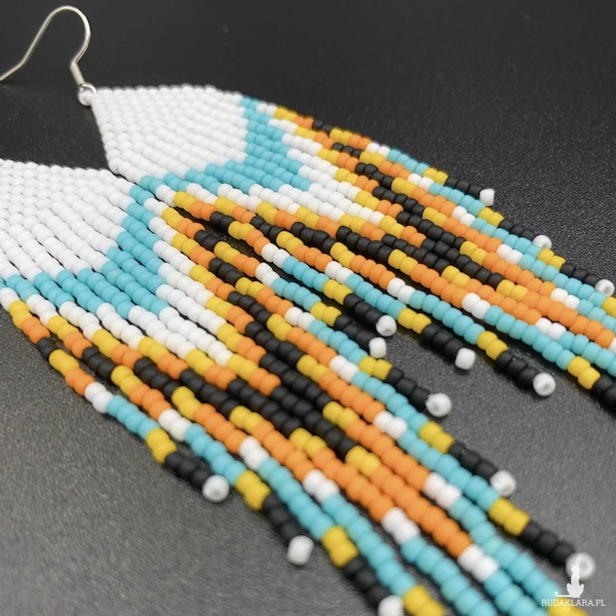 Etniczne kolczyki zostały w 100% utkane ręcznie z koralików TOHO 11. Każdą pracę wykonuję bardzo starannie.