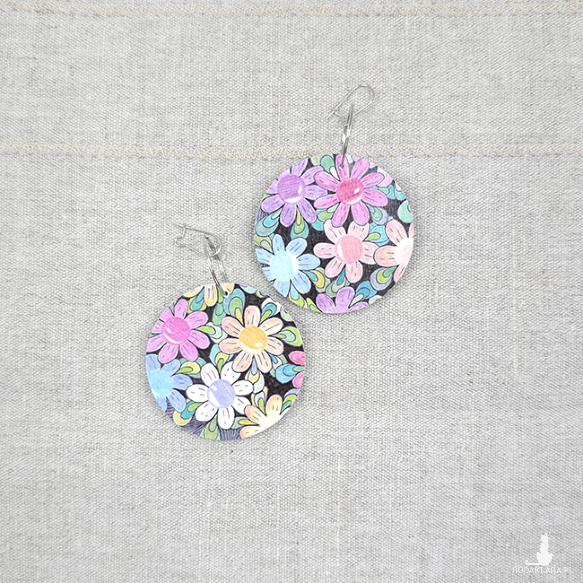 Wykonane z drewnianej bazy, na której uwieczniłam fragment mojego rysunku "Straszne stokrotki".