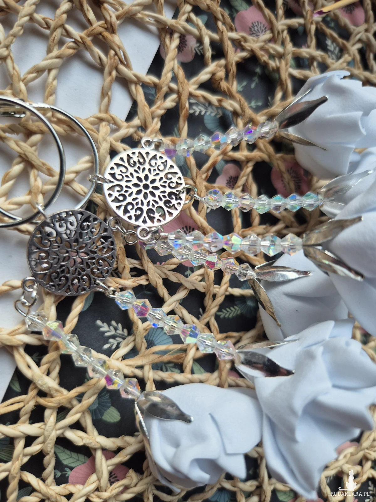 Kolczyki białe z koralikami duże mogą być ślubne wykonane w pojedynczym  egzemplarzu polecam