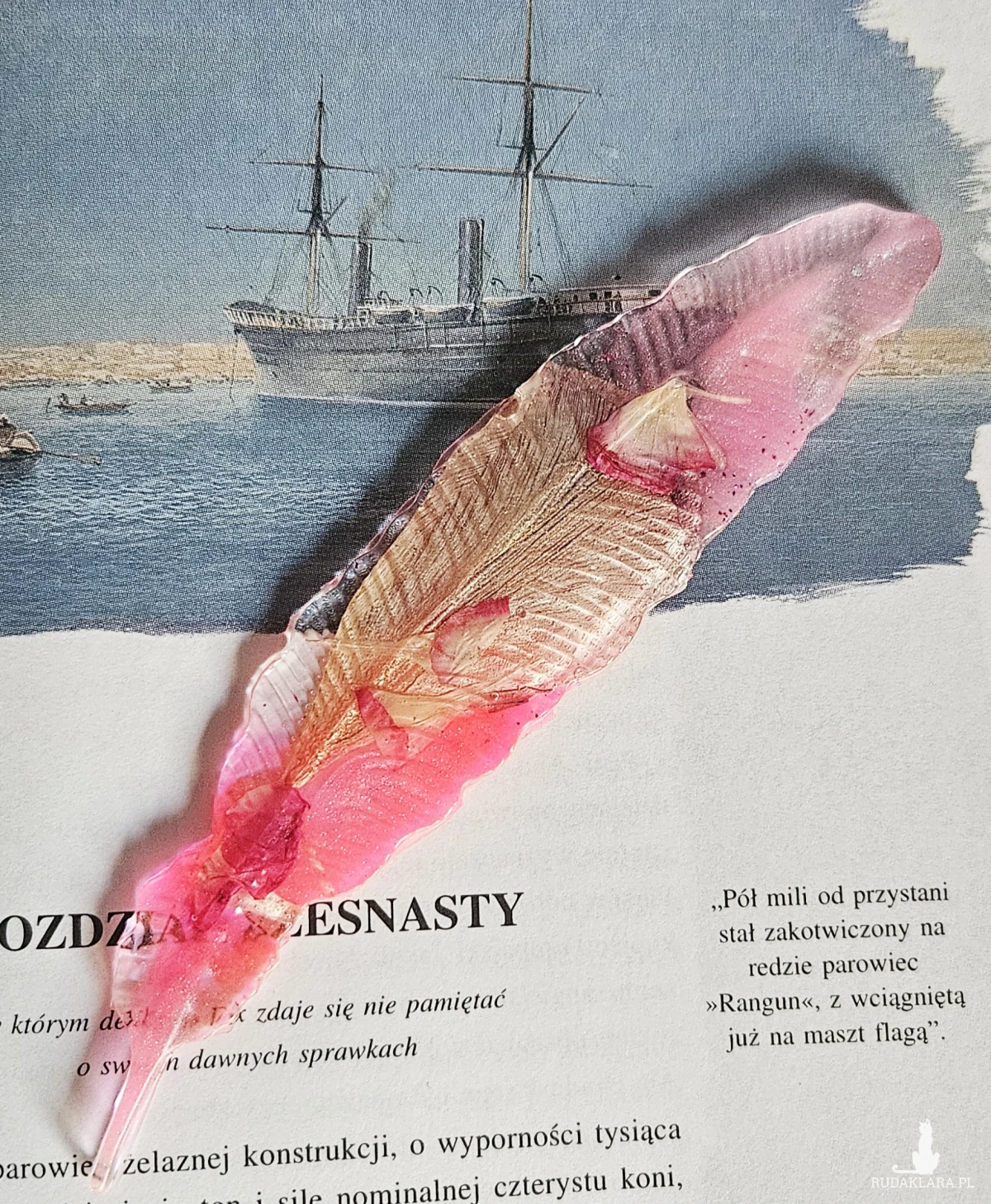 Zakładka z żywicy epoksydowej pióro z płatkiem tulipana P16