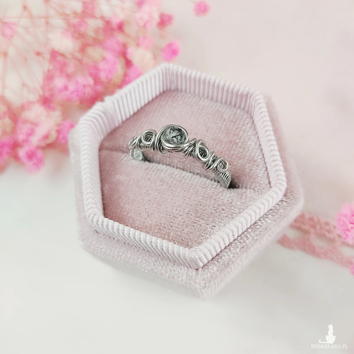 Pierścionek Kwarc Turmalinowy ręcznie robiony. Wykonany techniką wire wrapping z drutów ze stali chirurgicznej.
