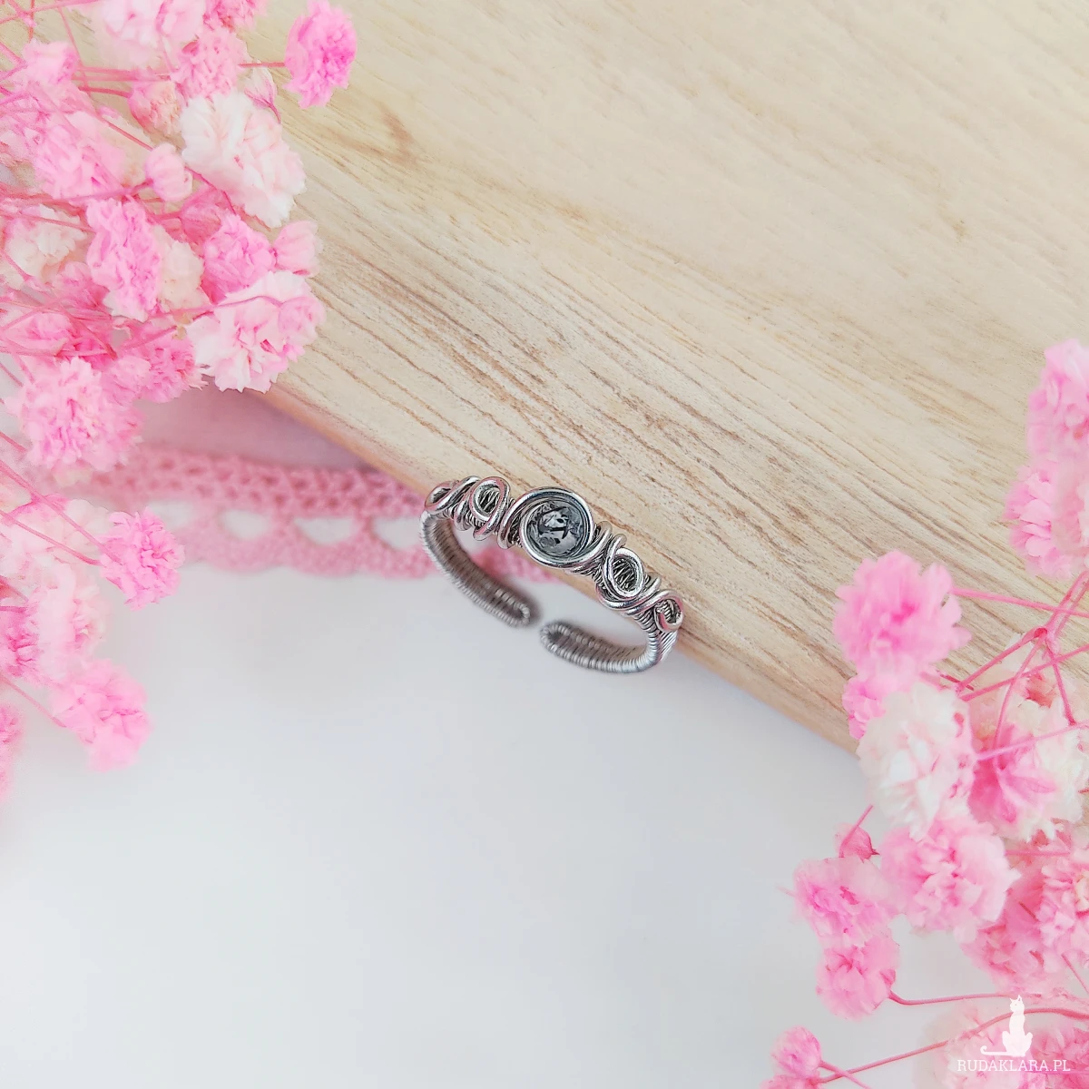 Pierścionek jest regulowany, będzie pasował na każdy palec.