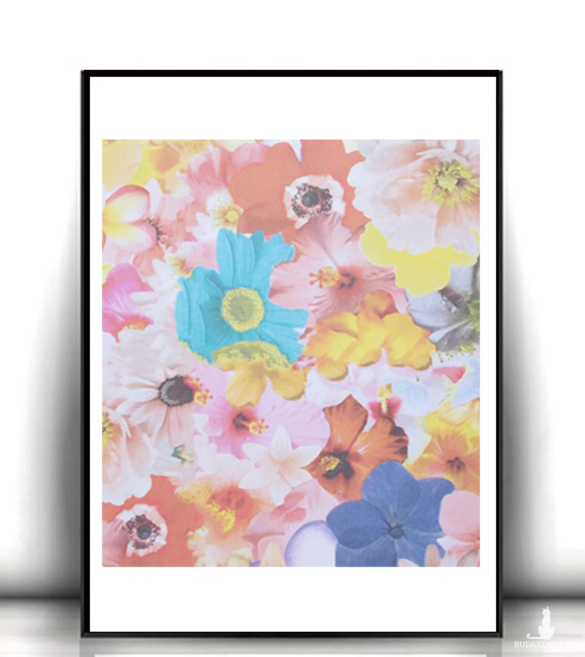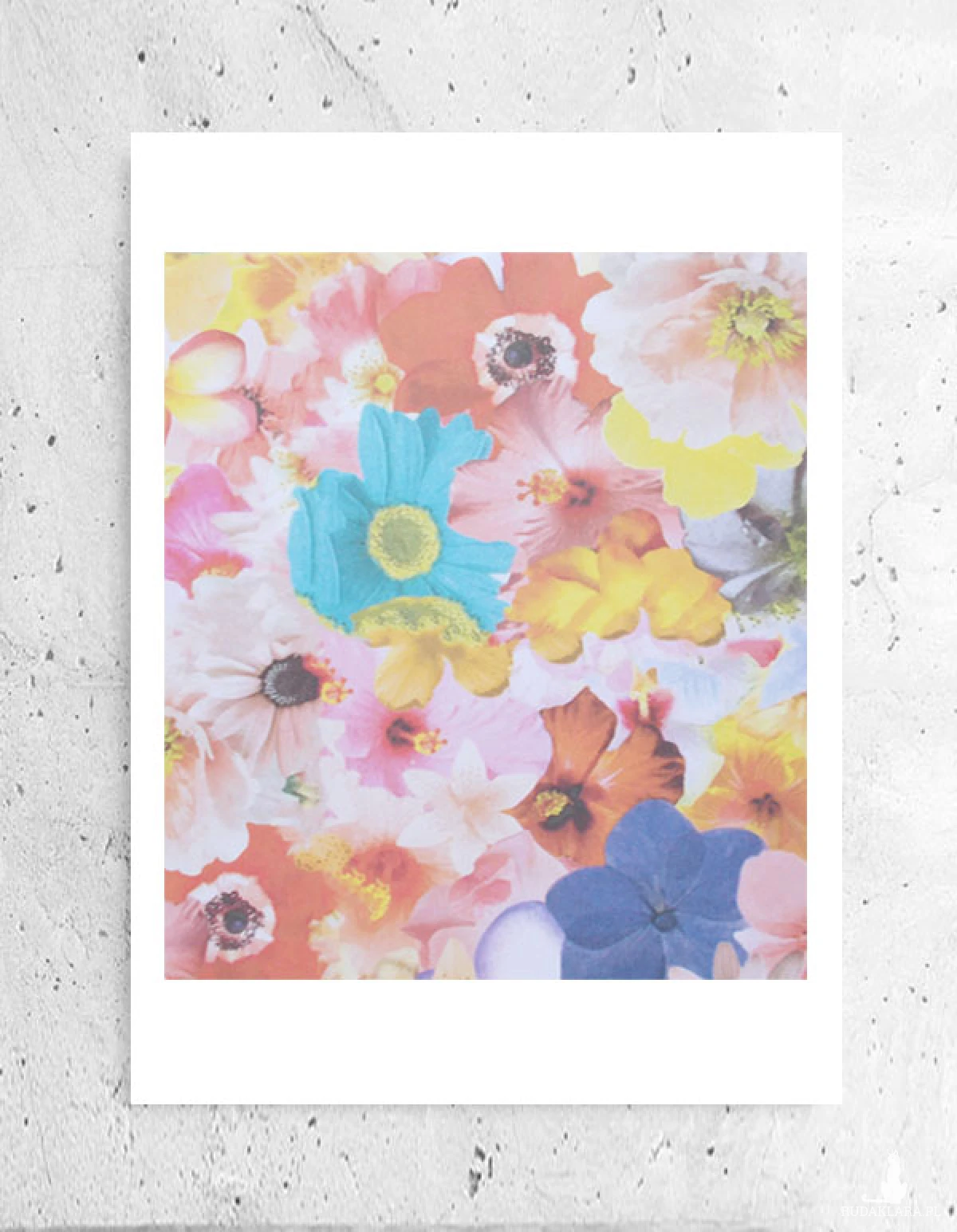 Nowy, kolorowy plakat z kwiatami. Grafika na białym kartoniku w rozmiarze A4. Dekoracja na ścianę do sypialni, salonu, kuchni, jadalni, pokoju dziewczynki lub nastolatki, biura, gabinetu, kawiarni, cukierni, restauracji itp. Poster wystarczy dać do ramki 21x30 cm. Plakat będzie pasował do każdego stylu urządzania wnętrz.