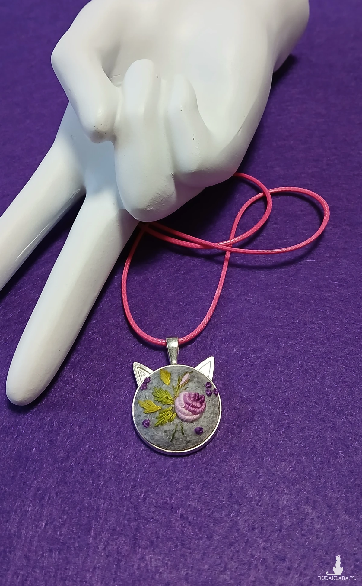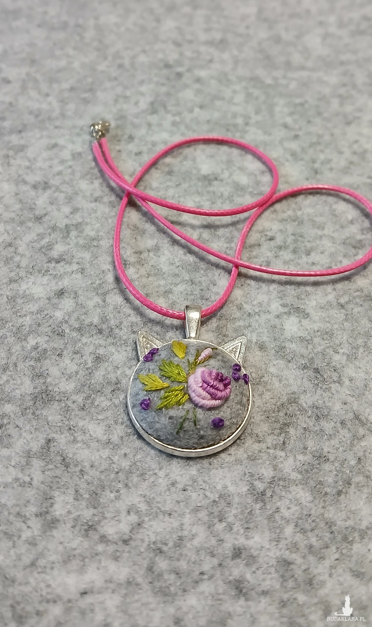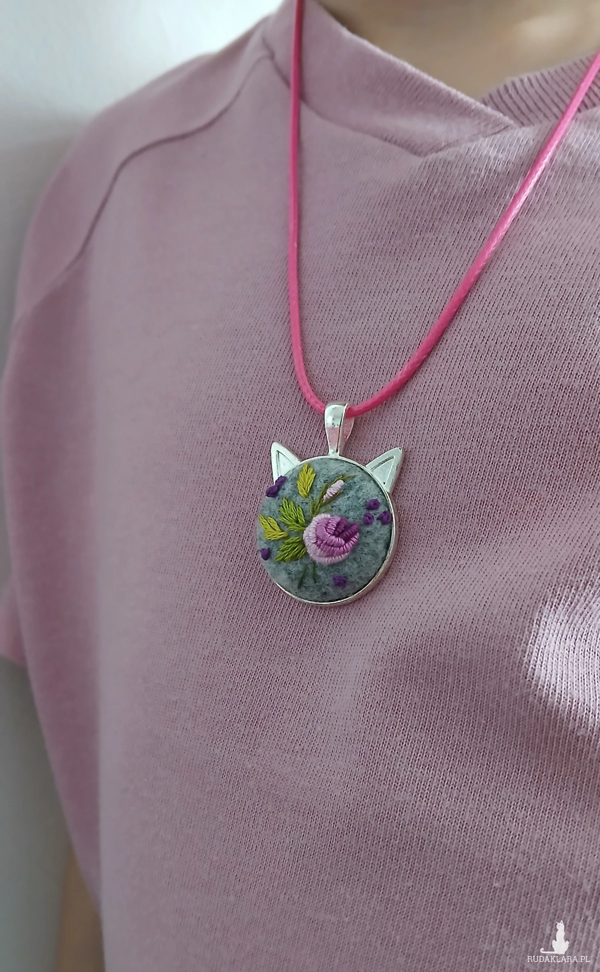 Perfekcyjnie dopracowany haft na filcu wykonałam polską bawełnianą muliną za pomocą igły. Jest on zabezpieczony impregnatem do tkanin ale po dłuższym użytkowaniu można go odświeżyć przy pomocy delikatnego mydła i letniej wody.