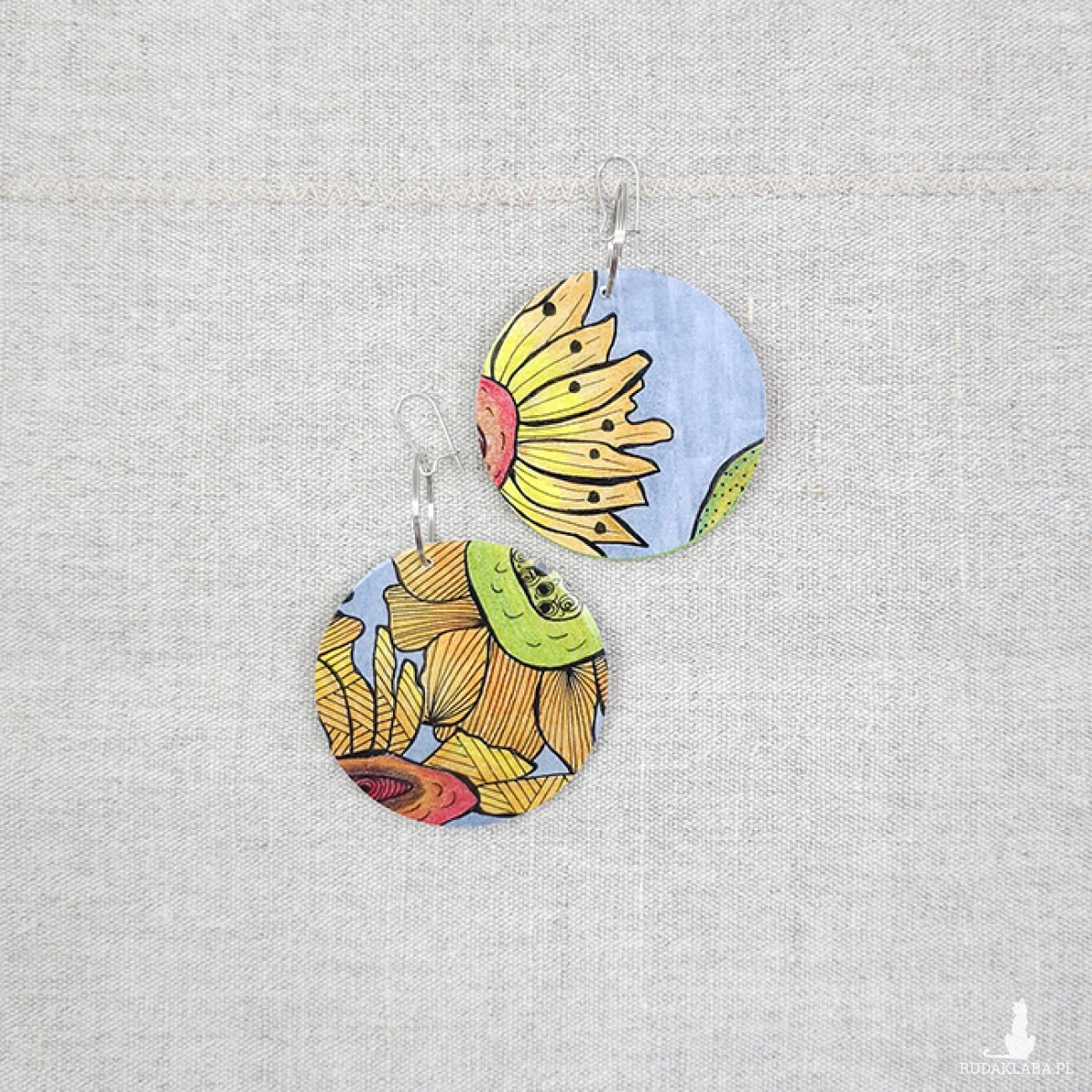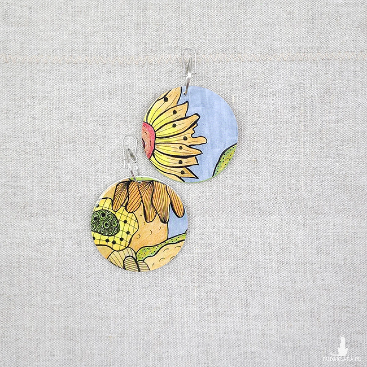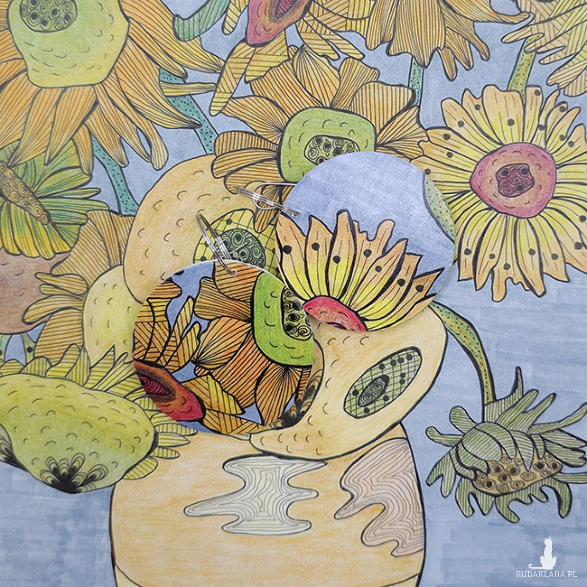 Te kolczyki to niebanalne połączenie inspiracji – słoneczniki, które wyglądają jakby wyszły prosto spod pędzla Van Gogha, a do tego są pełne relaksujących wzorów w stylu zentangle.