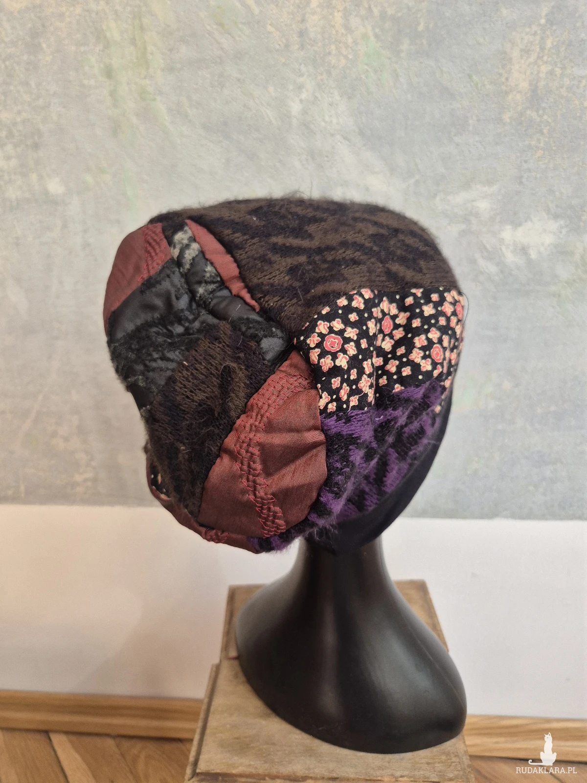 Czapka patchworkowa w kolorach ziemi rozmiar uniwersalny na podszewce świetna na codziennie noszenie bardzo sprawna Box D1 rękodzieło
