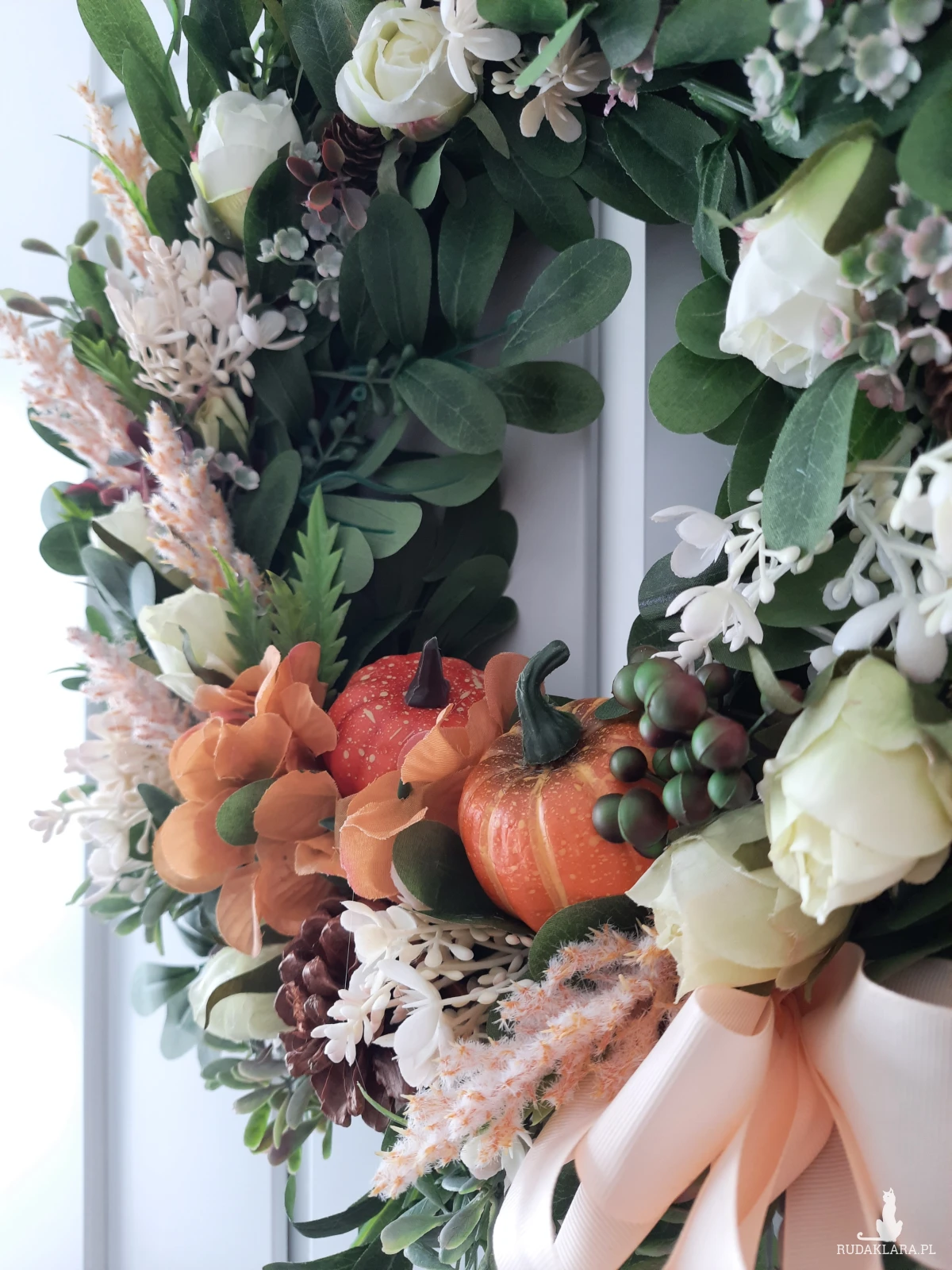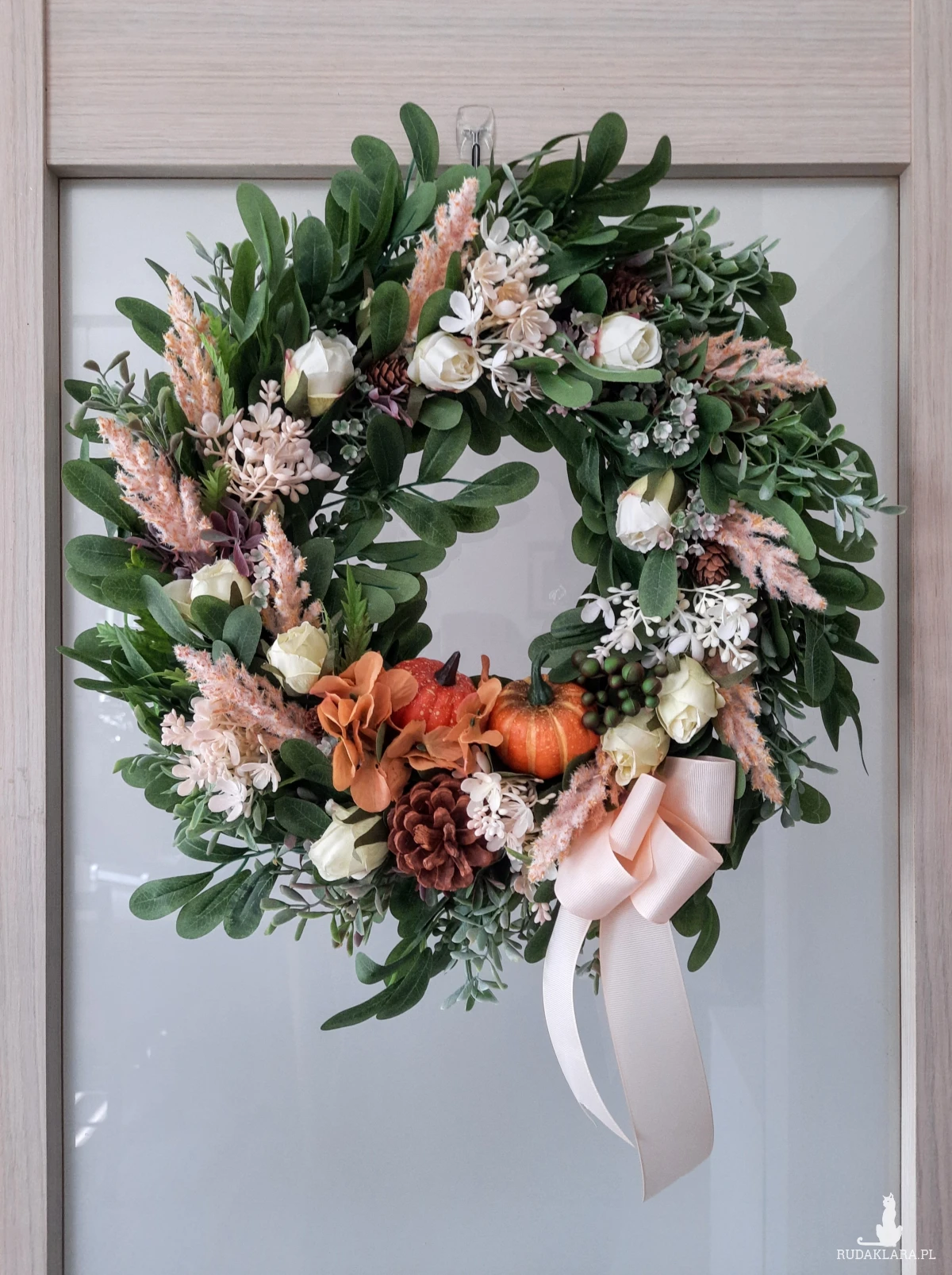 Wianek jesienny w pastelowej gamie kolorystycznej.