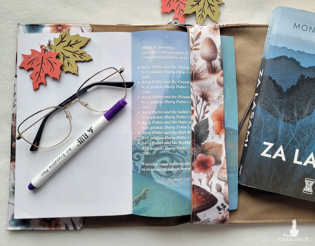 - zapięcie na gumkę, dzięki czemu książka się nie otwiera, a okładka dostosowuje się do grubości tomu;