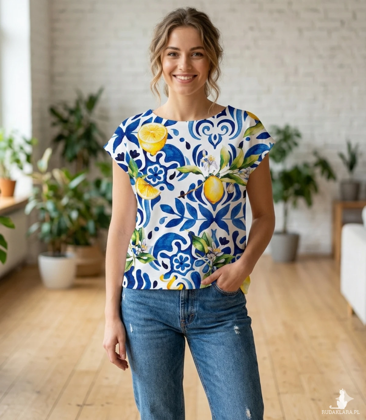 Bluzka jest uszyta z jerseyu bawelnianego. Super kolory, fajna dzianina to podstawa w garderobie. Bluzka ma obwód bioder 94cm, długość 65cm.