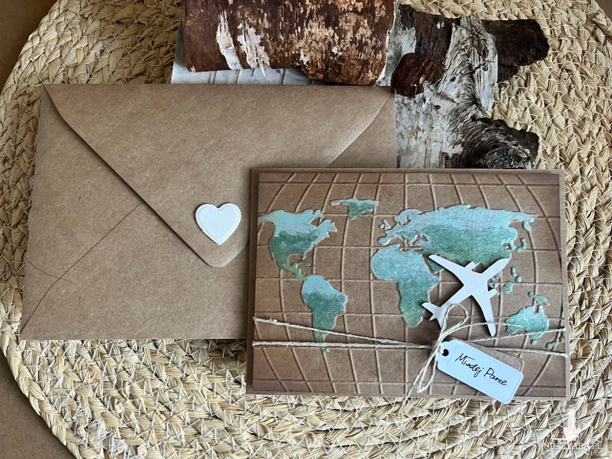 Kartka z okazji Ślubu w dopasowaną stylistycznie kopercie dla Młodej Pary , która kocha podróże i wybiera się w szczęśliwą podróż przez wspólne życie z urokliwym samolotem. Komplet stworzony na bazie papieru kraftowego nadając kompletowi klimat eco. Kartka ma wymiary 14,5 x 10,5 a koperta 12,5 x 17,0..W środku kartki znajdują się gotowe życzenia oraz umieszczono kieszonkę na małe co nieco lub kupon lotto , W tej postaci produkt dostępny od ręki .