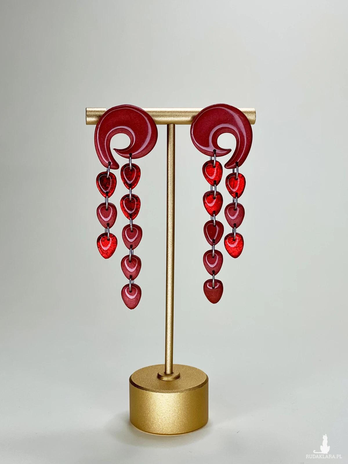 Projektuję artystyczną biżuterię z gliny polimerowej, którą wykańczam żywicą. Zapraszam na mój instagram: clayee.art, na którym pokazuję jak je tworzę.