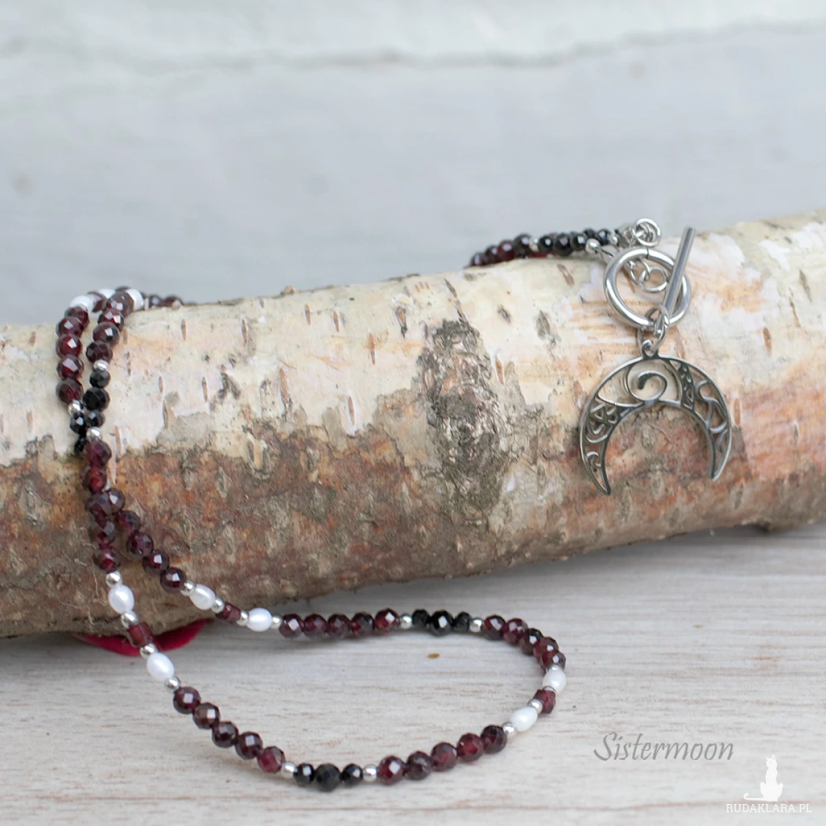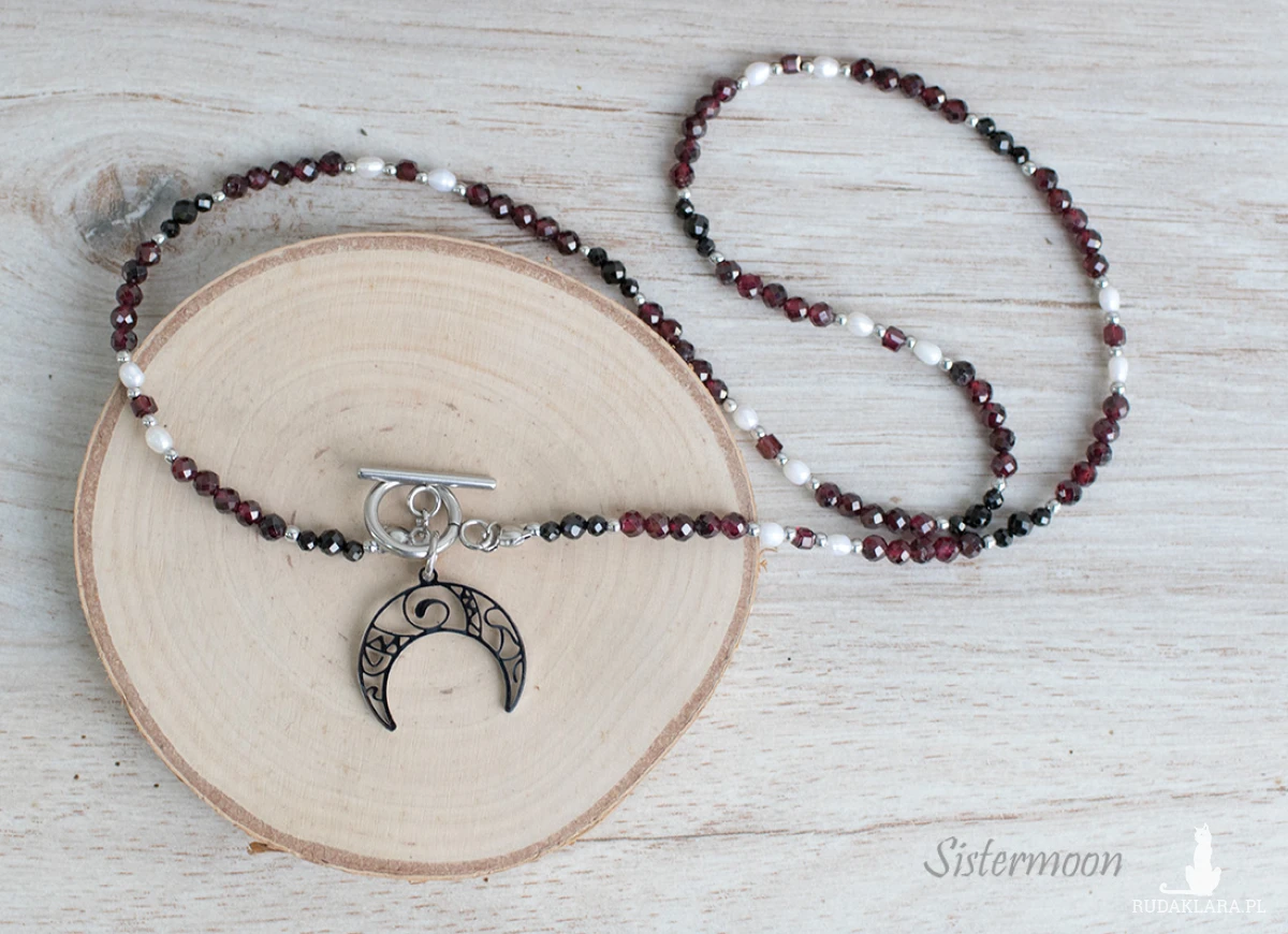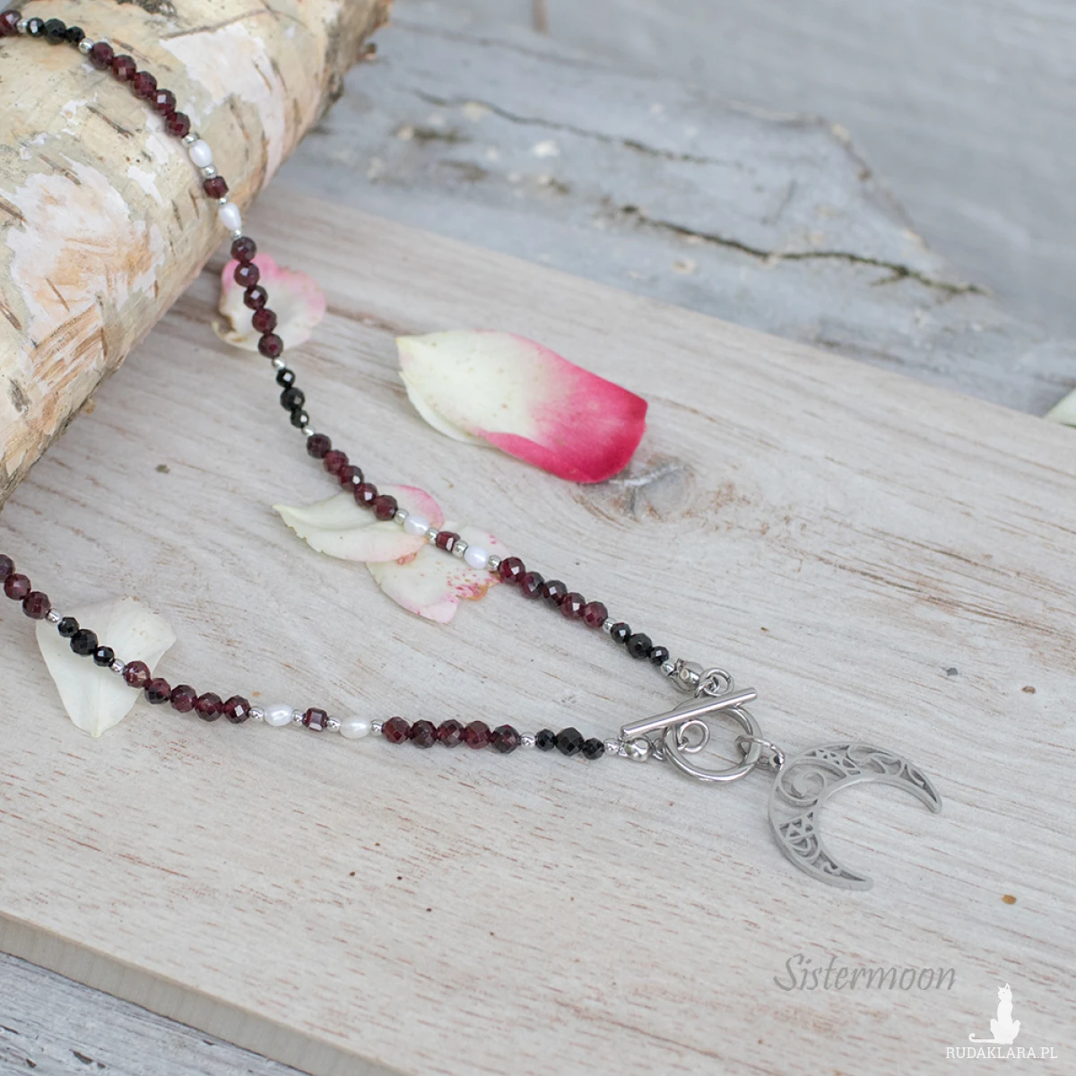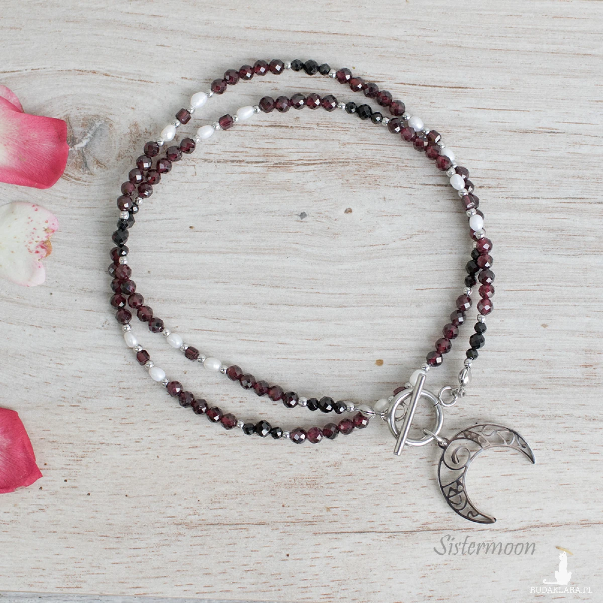 granaty, spinele, hematyty. Zapinanie typu toggle. Długość: 46 cm.