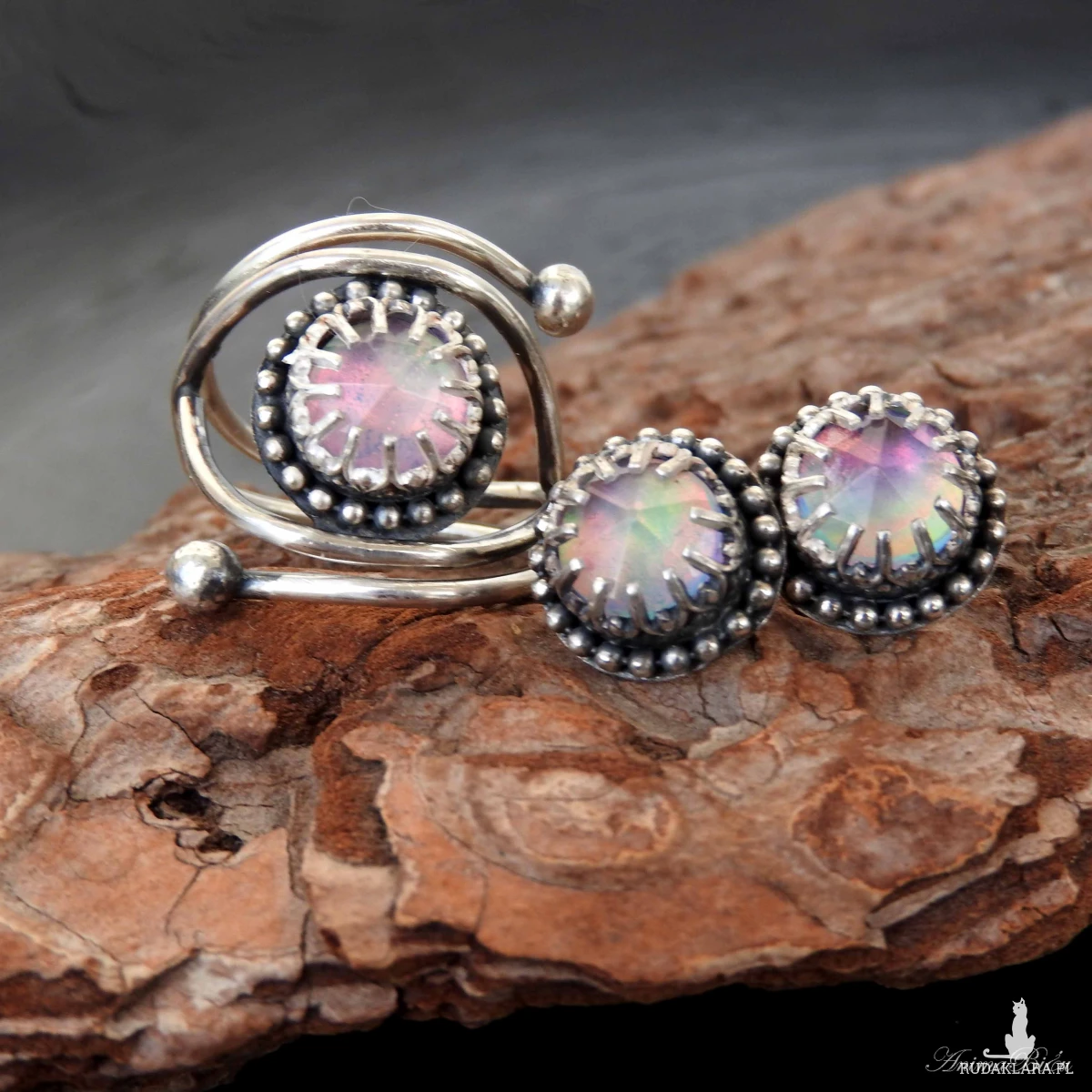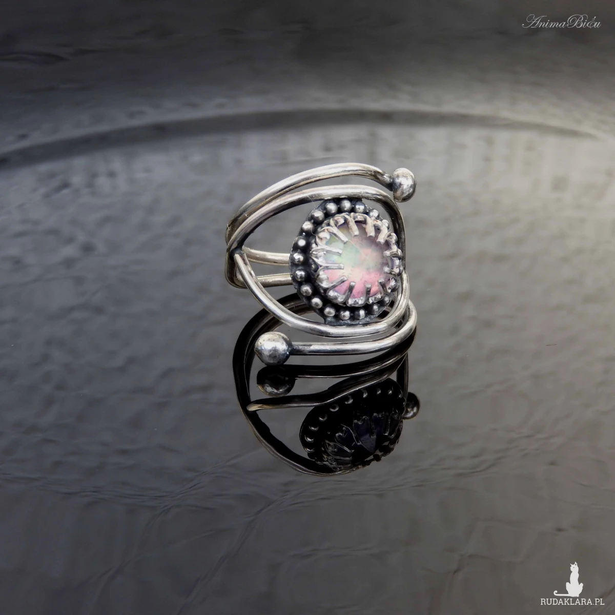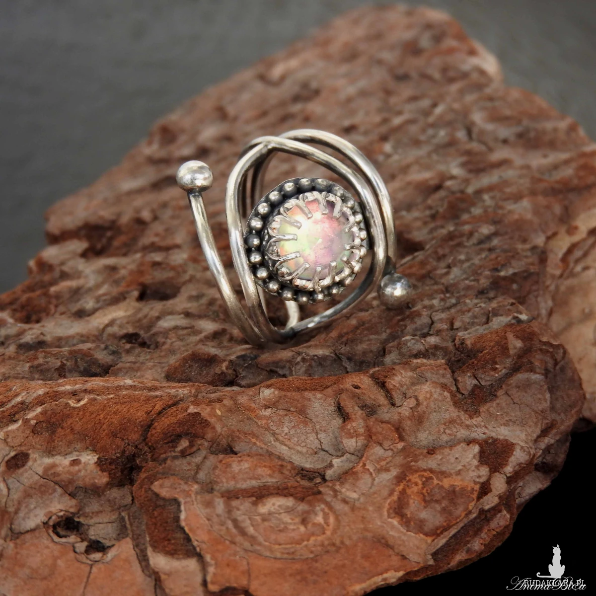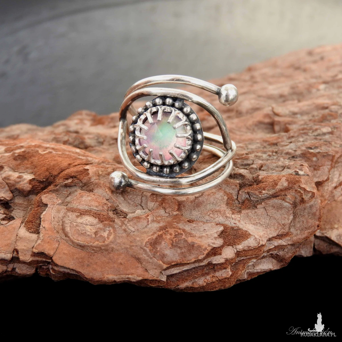 Pierścionek srebrny z opalem aurora. Wykonany od podstaw