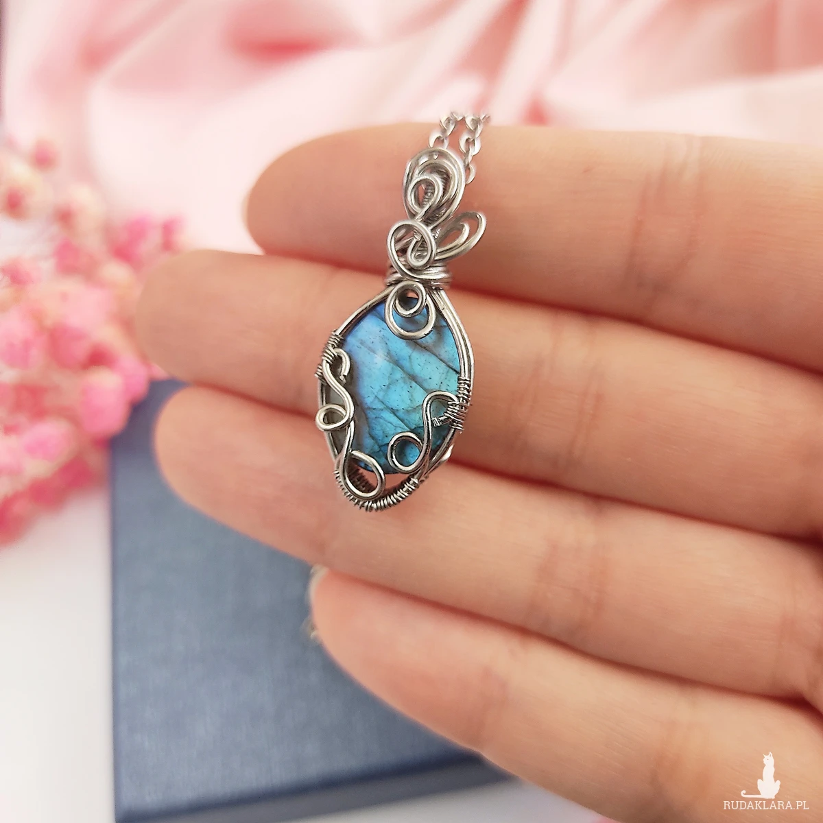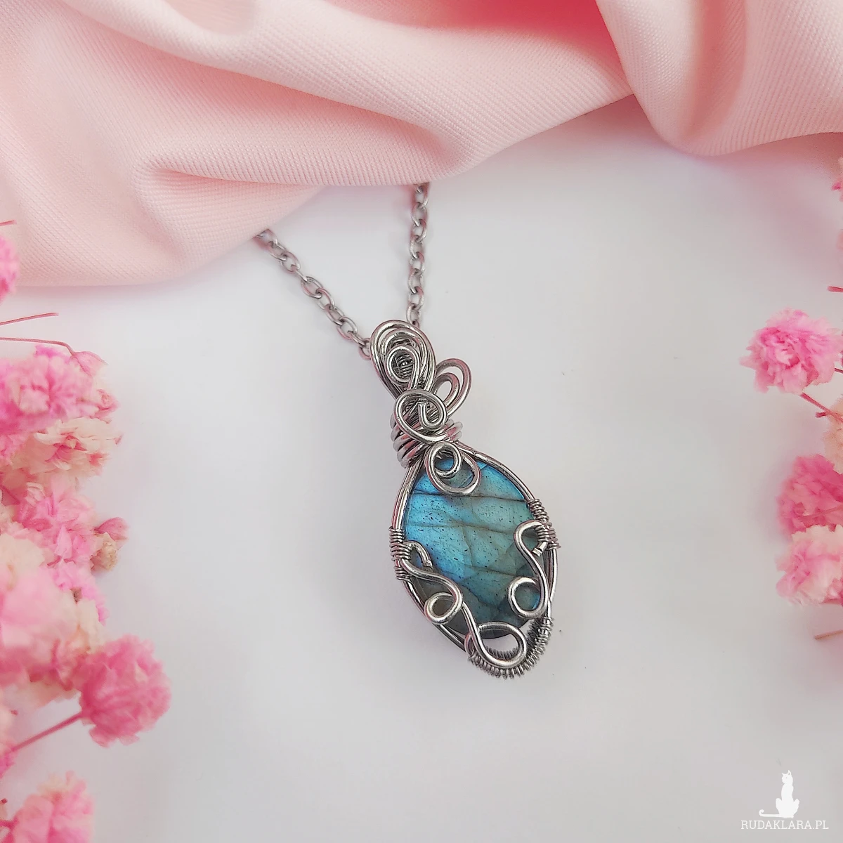 Naszyjnik Labradoryt Niebieski ręcznie robiony. Wykonany techniką wire wrapping z drutów ze stali chirurgicznej.