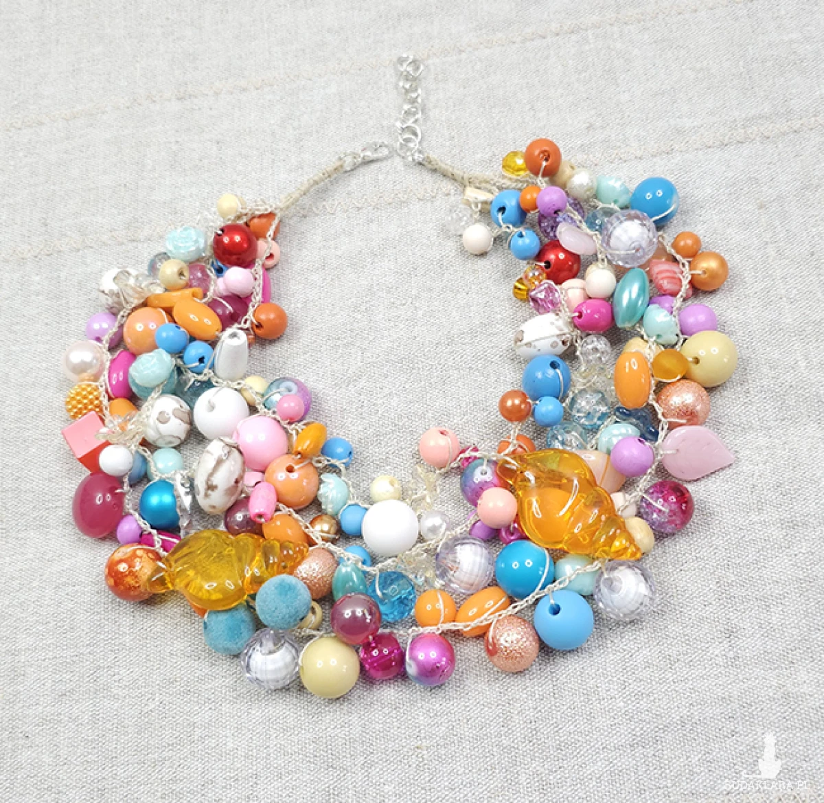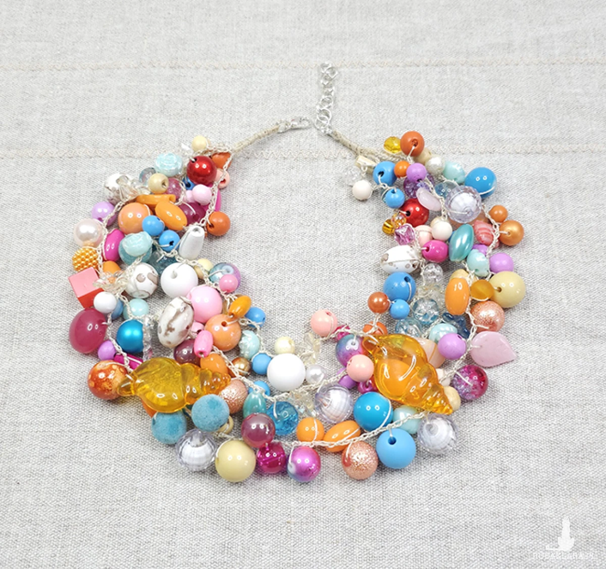 Odkryj nasz uroczy, ręcznie robiony naszyjnik, który przyciąga wzrok delikatnymi, pastelowymi kolorami!