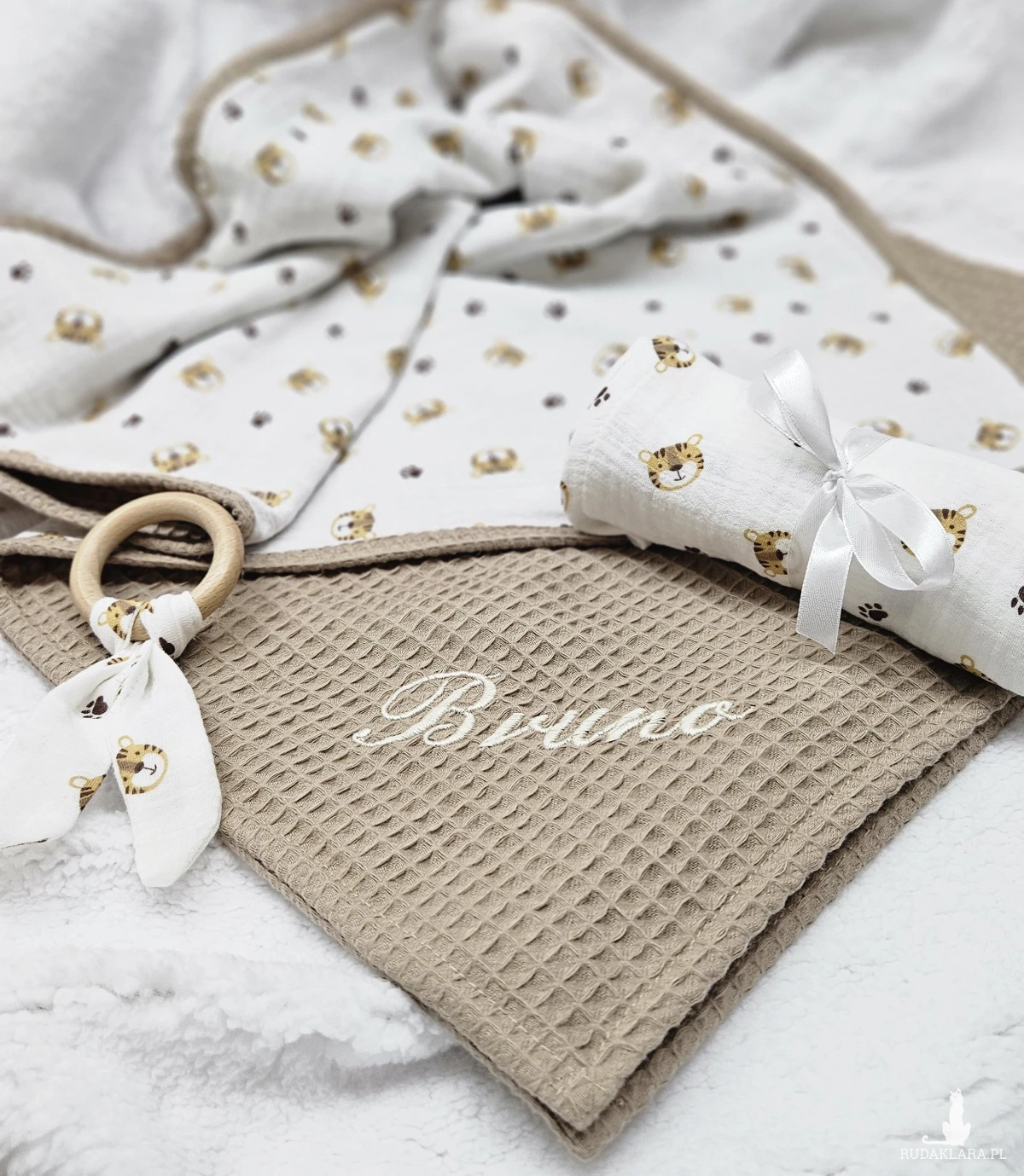 Tkanina wafelkowa oraz muślin jest bezpieczna dla dziecka, utrzymuje ciepło ale nie przegrzewa, jest bardzo chłonna, oddychająca i szybko schnie.