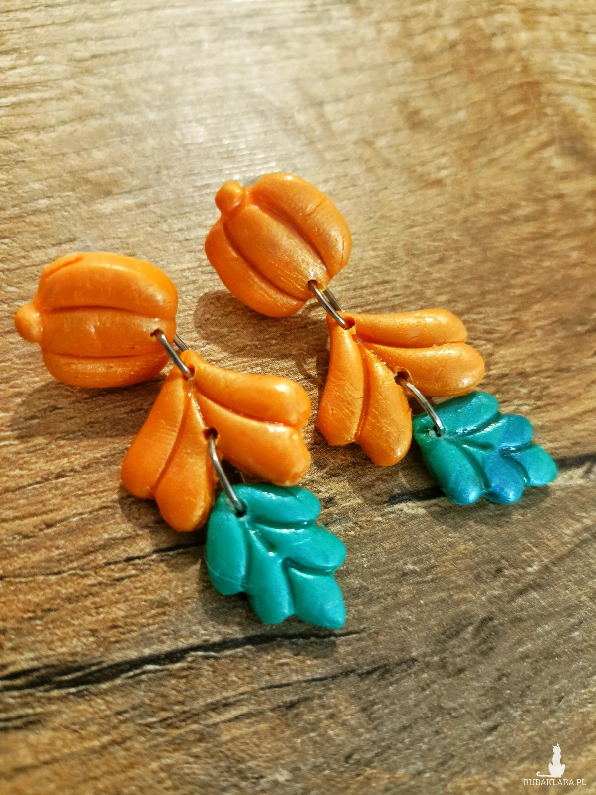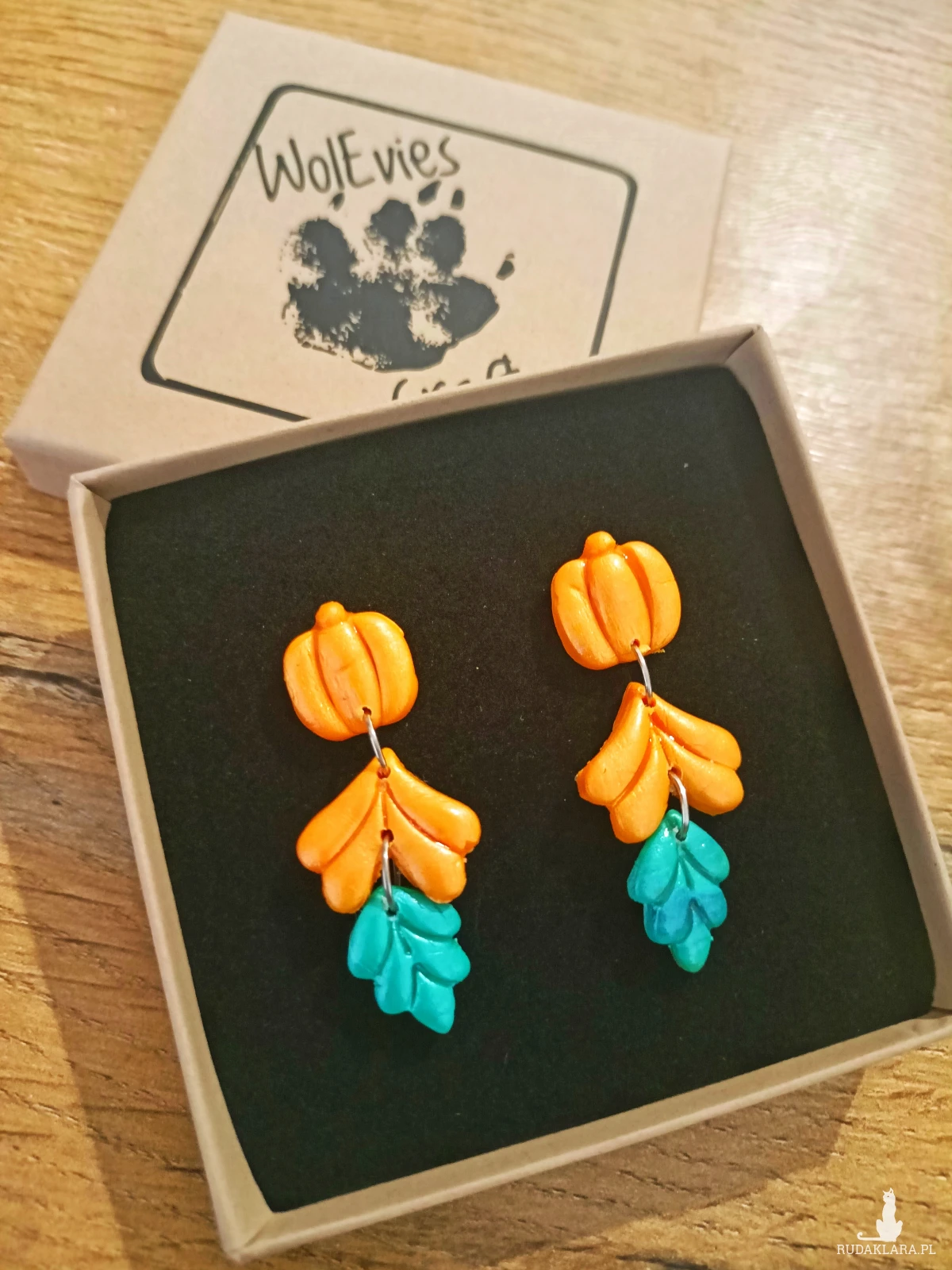 kolczyki jesienne handmade • kolczyki dynie handmade • kolczyki z glinki polimerowej • kolczyki perłowe błyszczące • biżuteria handmade jesień • kolczyki dynie z listkami • kolczyki handmade prezent • kolczyki z żywicą epoksydową • unikatowa biżuteria handmade • kolczyki handmade w pudełeczku