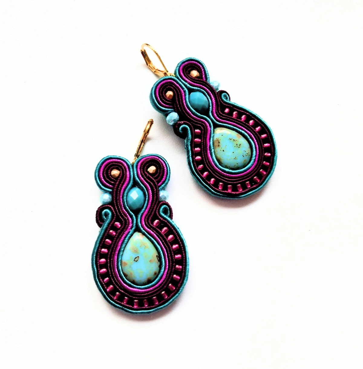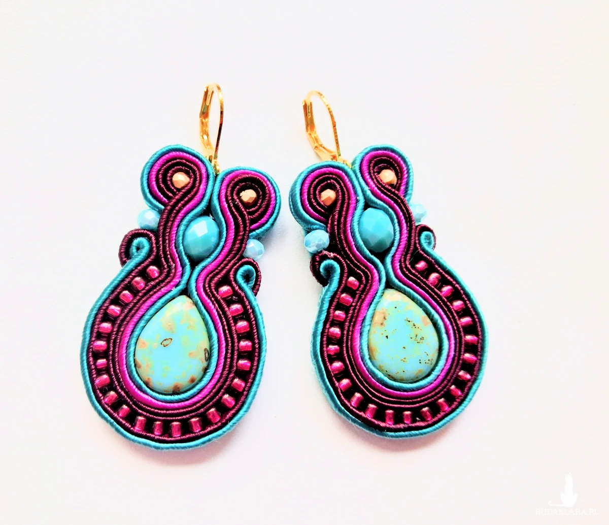 Materiał: sutasz, łezki travertine, japońskie koraliki Toho, koraliki Fire Polish