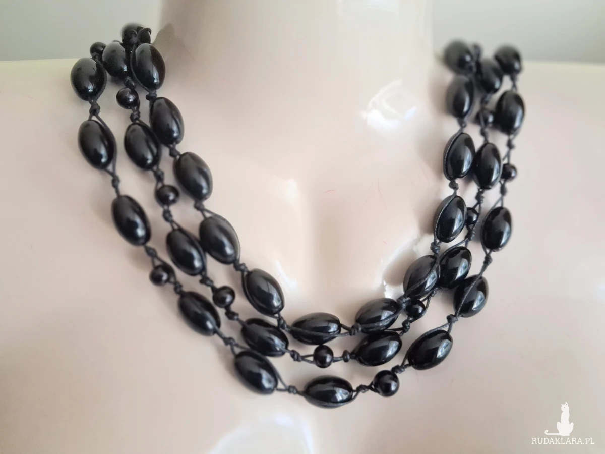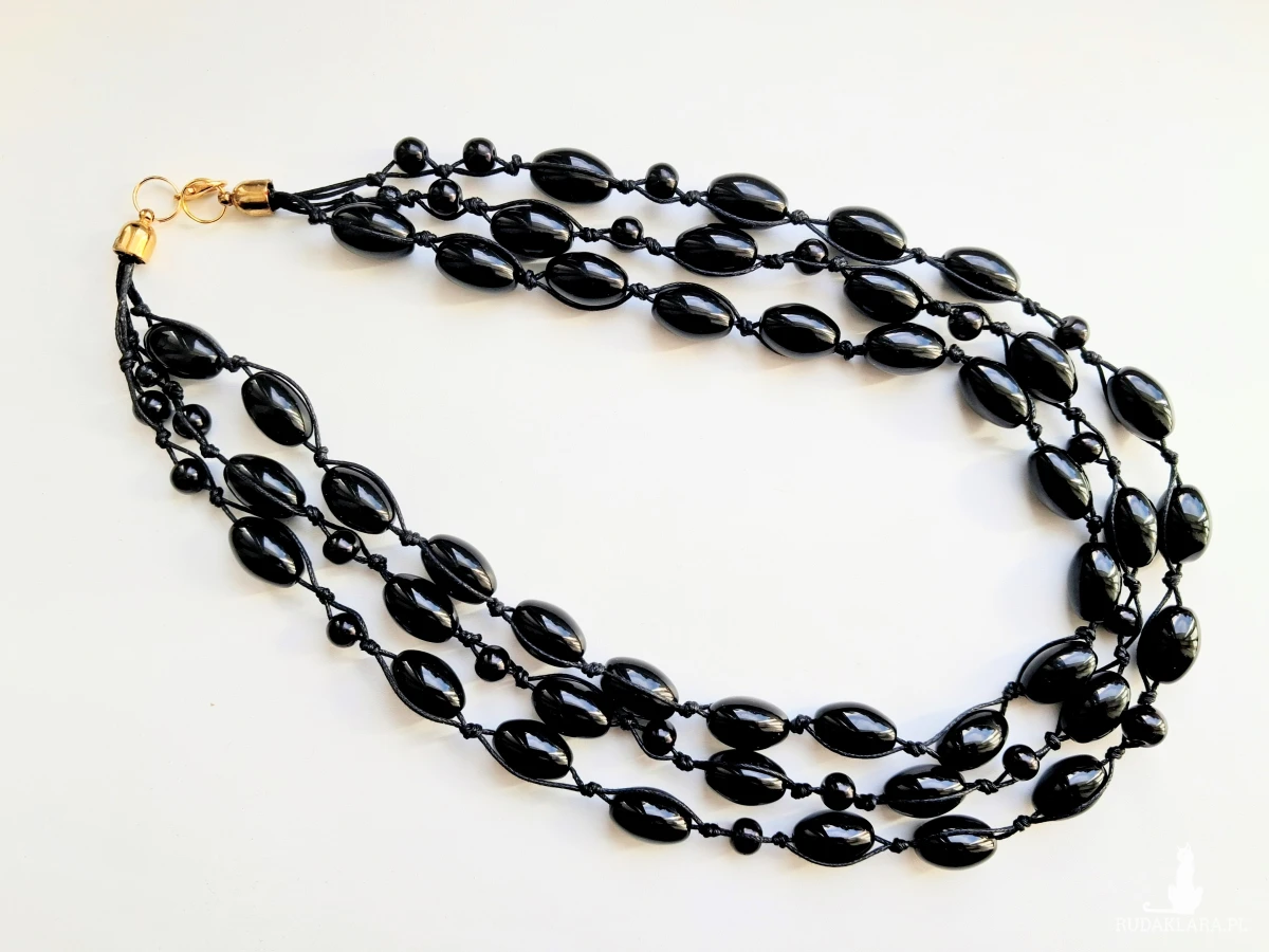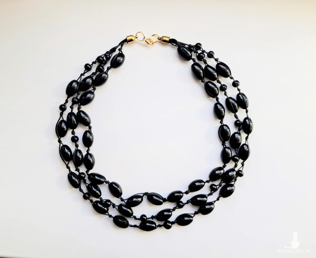 Niezwykły naszyjnik wykonany ręcznie w jednym egzemplarzu z pereł, koralików szklanych i 6 sznurków z bawełny woskowanej.