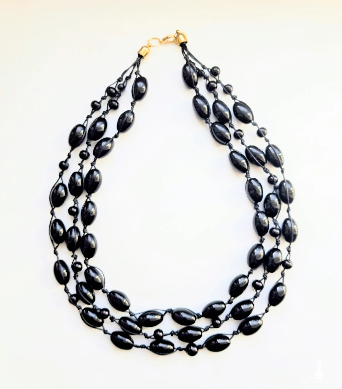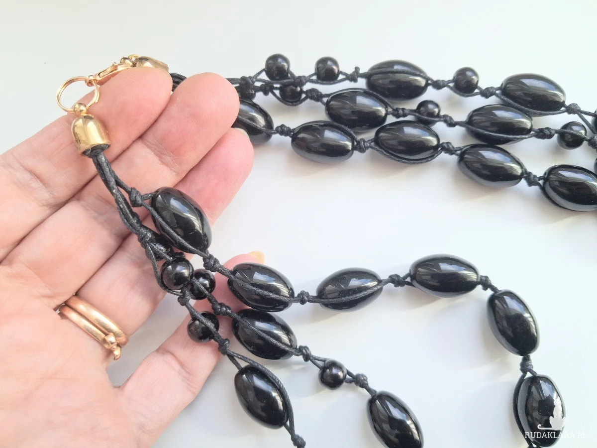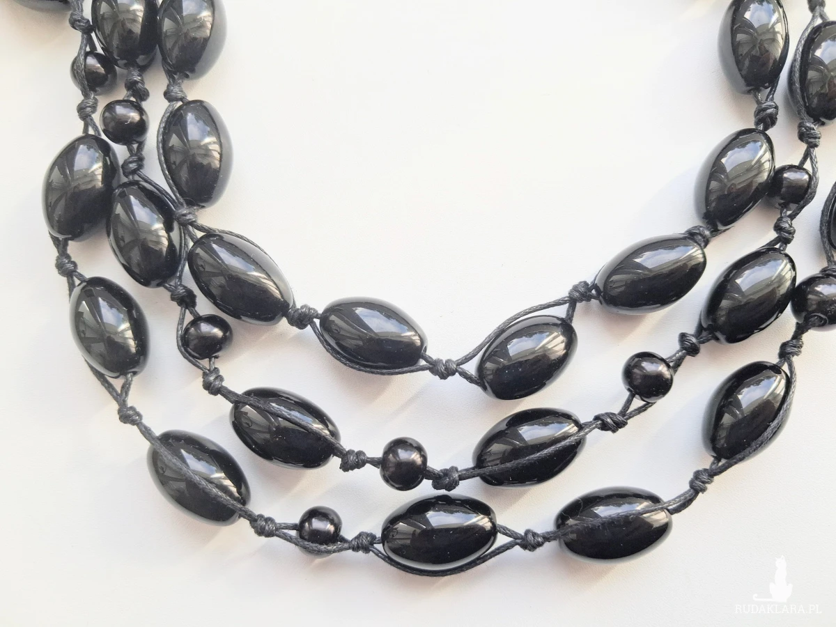 Niezwykły naszyjnik wykonany ręcznie w jednym egzemplarzu z pereł, koralików szklanych i 6 sznurków z bawełny woskowanej.