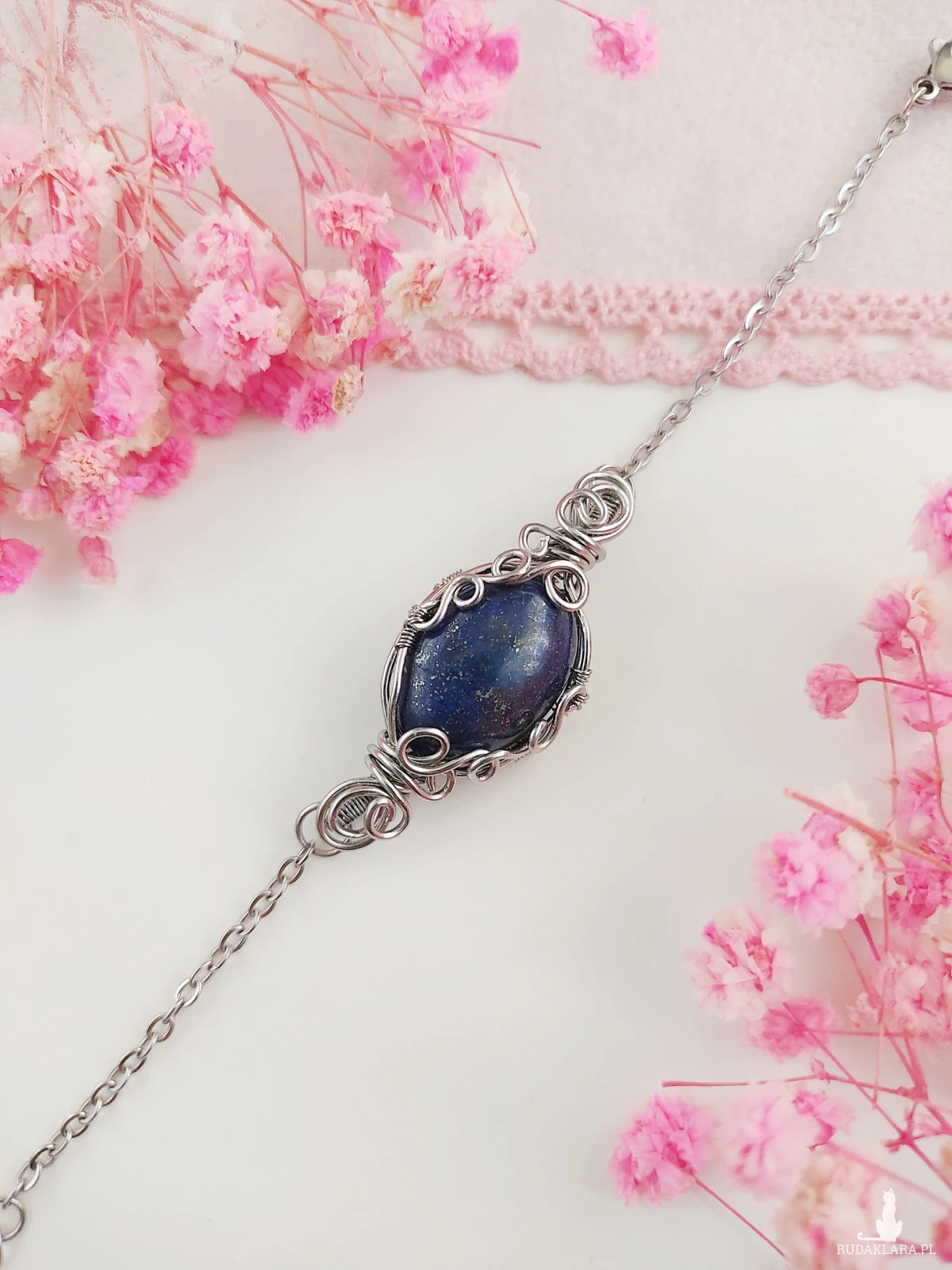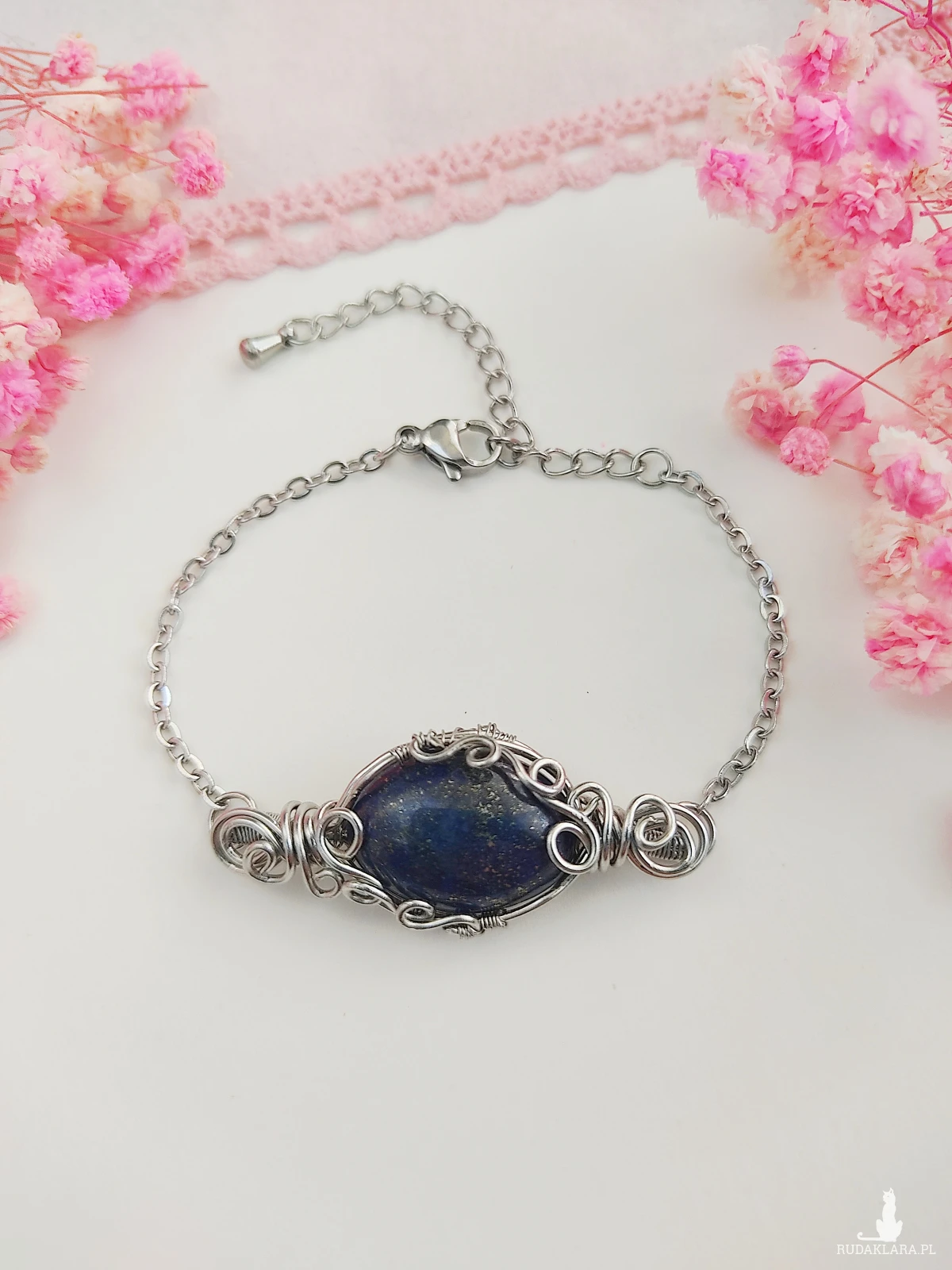 Bransoletka została stworzona ręcznie, a każdy splot drutu ze stali chirurgicznej został precyzyjnie uformowany, by podkreślić piękno naturalnego kamienia. Technika wire wrapping pozwala na wydobycie indywidualnego charakteru lapis lazuli i tworzy wyjątkowy efekt wizualny, który sprawia, że biżuteria staje się prawdziwym dziełem sztuki. Dzięki ręcznemu wykonaniu możesz mieć pewność, że bransoletka jest niepowtarzalna i nie istnieje drugi, identyczny egzemplarz.