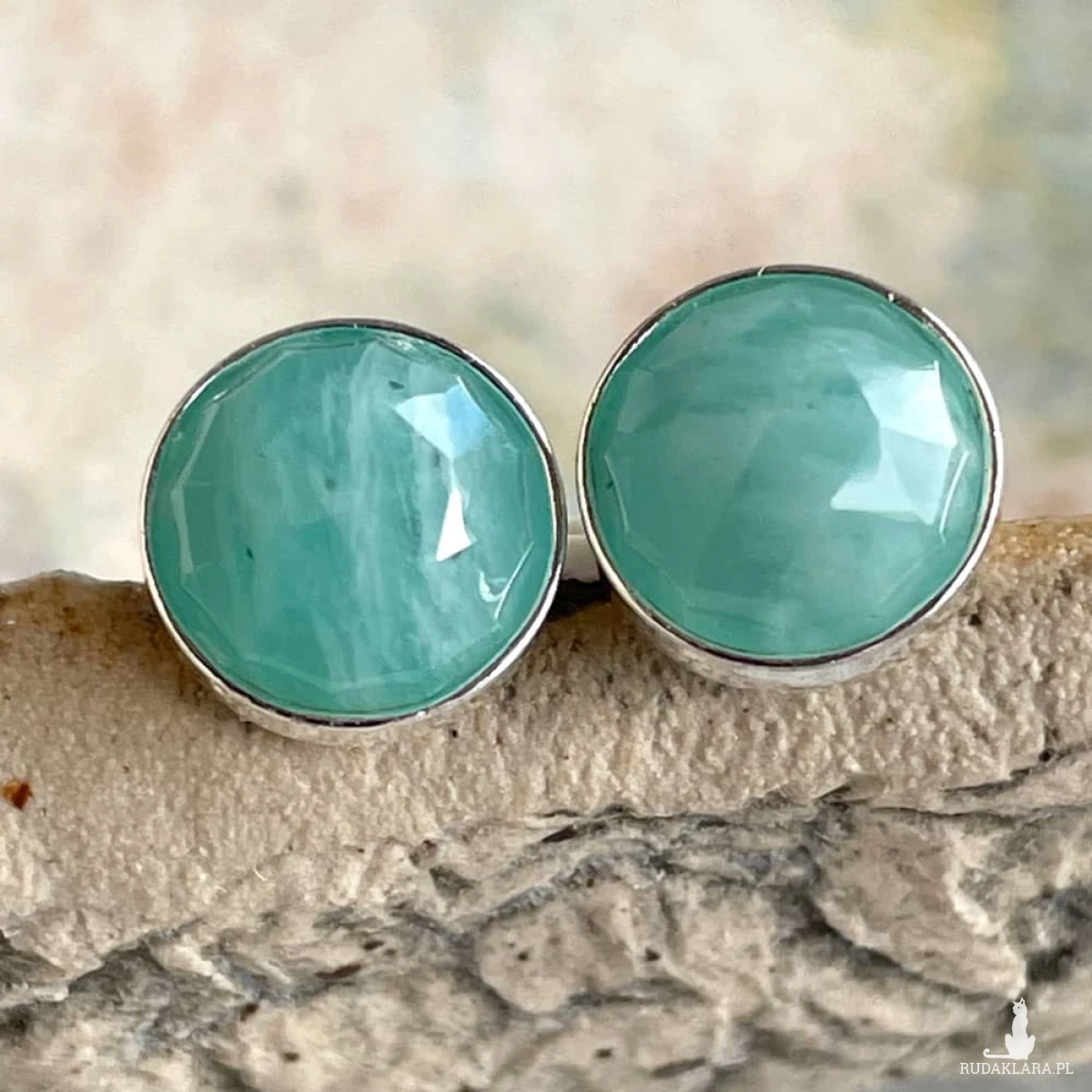 Kolczyki Drobinki z amazonitem należą do kolekcji „Drobinki” składającej się ze sztyftów o małej średnicy. W srebro został oprawiony okrągły amazonit w charakterystycznym odcieniu turkusu, który pięknie rozprasza światło za sprawą swojej fasetowanej powierzchni. Kolczyki dodadzą nawet prostej stylizacji koloru oraz dyskretnej elegancji. Staranność wykonania i klasyczne wzornictwo czynią je doskonałym wyborem dla osób ceniących ponadczasową biżuterię.