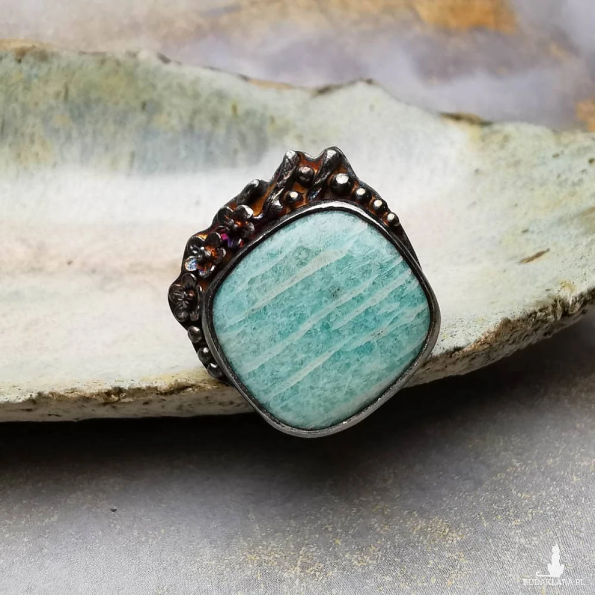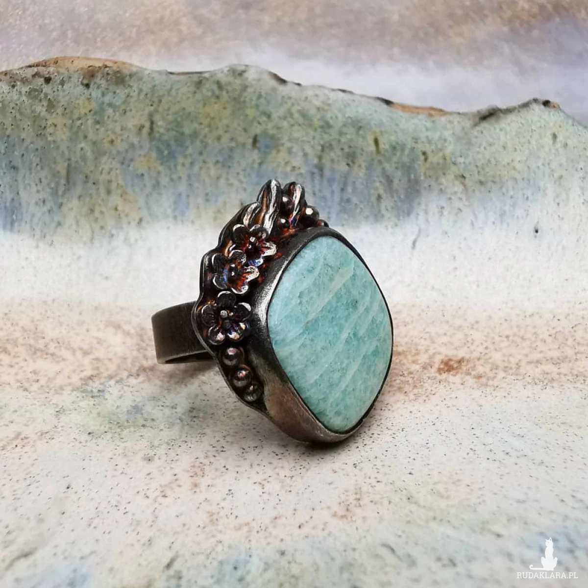 Srebrny pierścionek z amazonitem to wyjątkowa i oryginalna propozycja. Ręcznie robiona biżuteria zwraca uwaga nie tylko wielkością kamienia ale i wysoką jakością jej wykonania. Ciekawym dodatkiem jest kwiecista srebrna korona, która nadaje biżuterii romantycznego charakteru. Srebrny pierścionek z amazonitem to połączenie nowoczesności ze stylem retro. Jest świetnym dodatkiem; może być także niezapomnianym prezentem dla bliskiej osoby, która lubi otaczać się przedmiotami wykonanymi z najwyższą starannością.