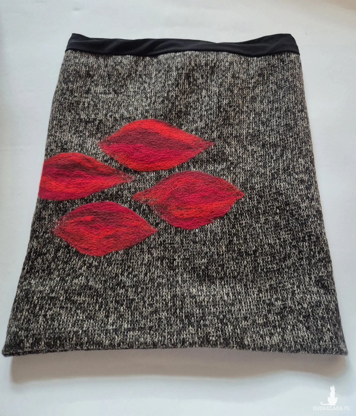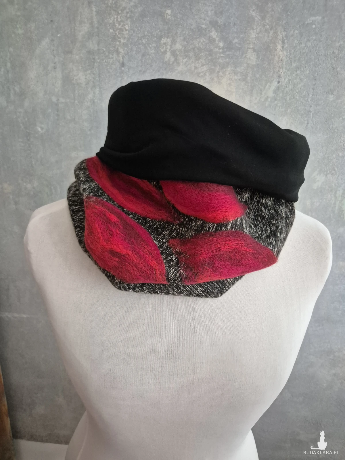Ciepły komin wciągany przez głowę wełniany na podszewce materiał szary melanż filcowany wełną merynosów ciepły miły ostatnia sztuka dostępna od ręki Box K1