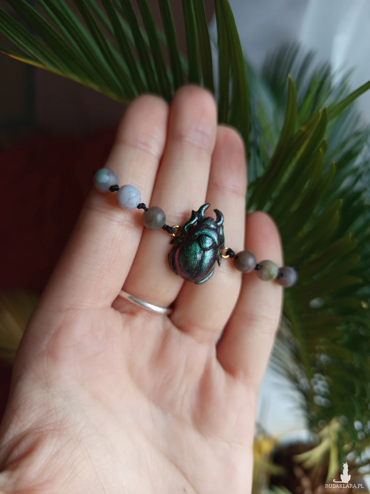 🪲💎 Bransoletka z żuczkiem i agatem – regulowana 💎🪲
