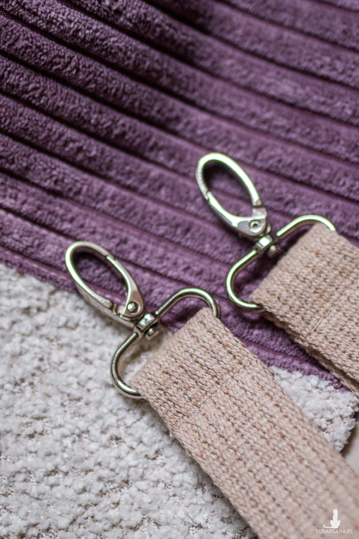 Ściągana jest jak worek bawełnianym sznurkiem w kolorze beżowym. Dół daje dodatkowe miejsce na przechowywanie rzeczy - z przodu dwie mniejsze, z tyłu torby jedna duża kieszeń.
