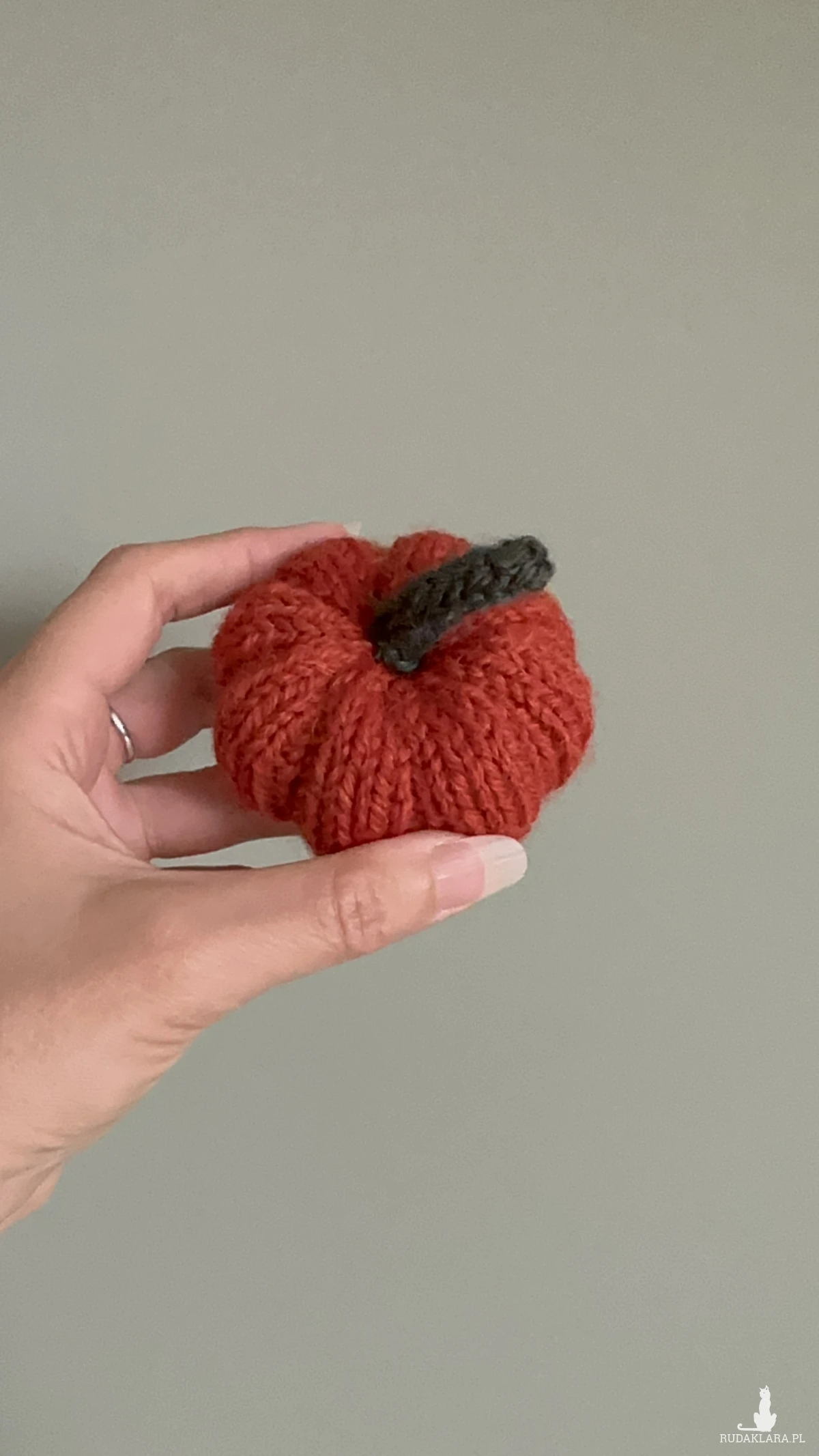Urocza, ręcznie wykonana wełniana dynia, stworzona z pasją w zachwycającym, ciepłym odcieniu pomarańczy.