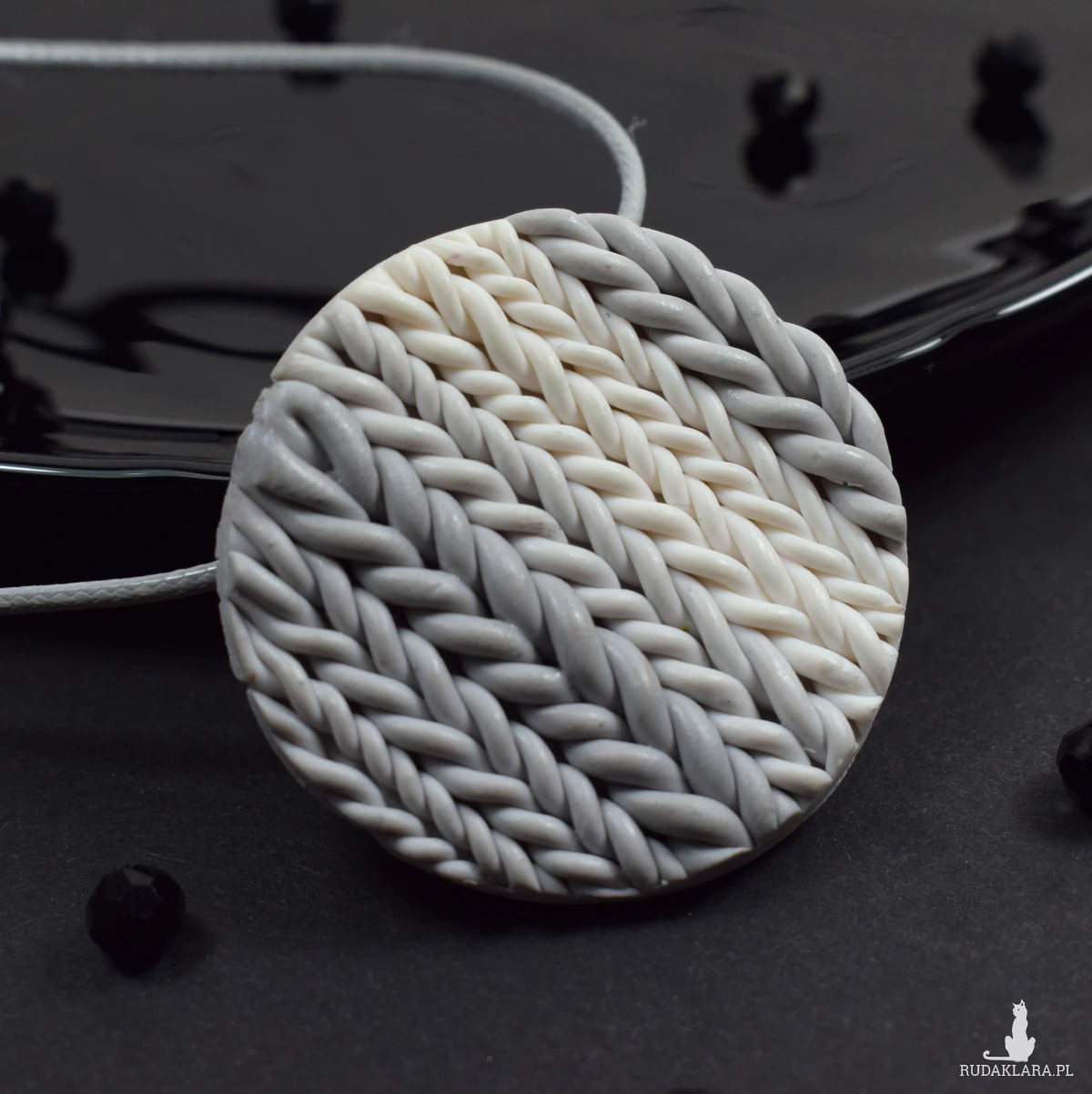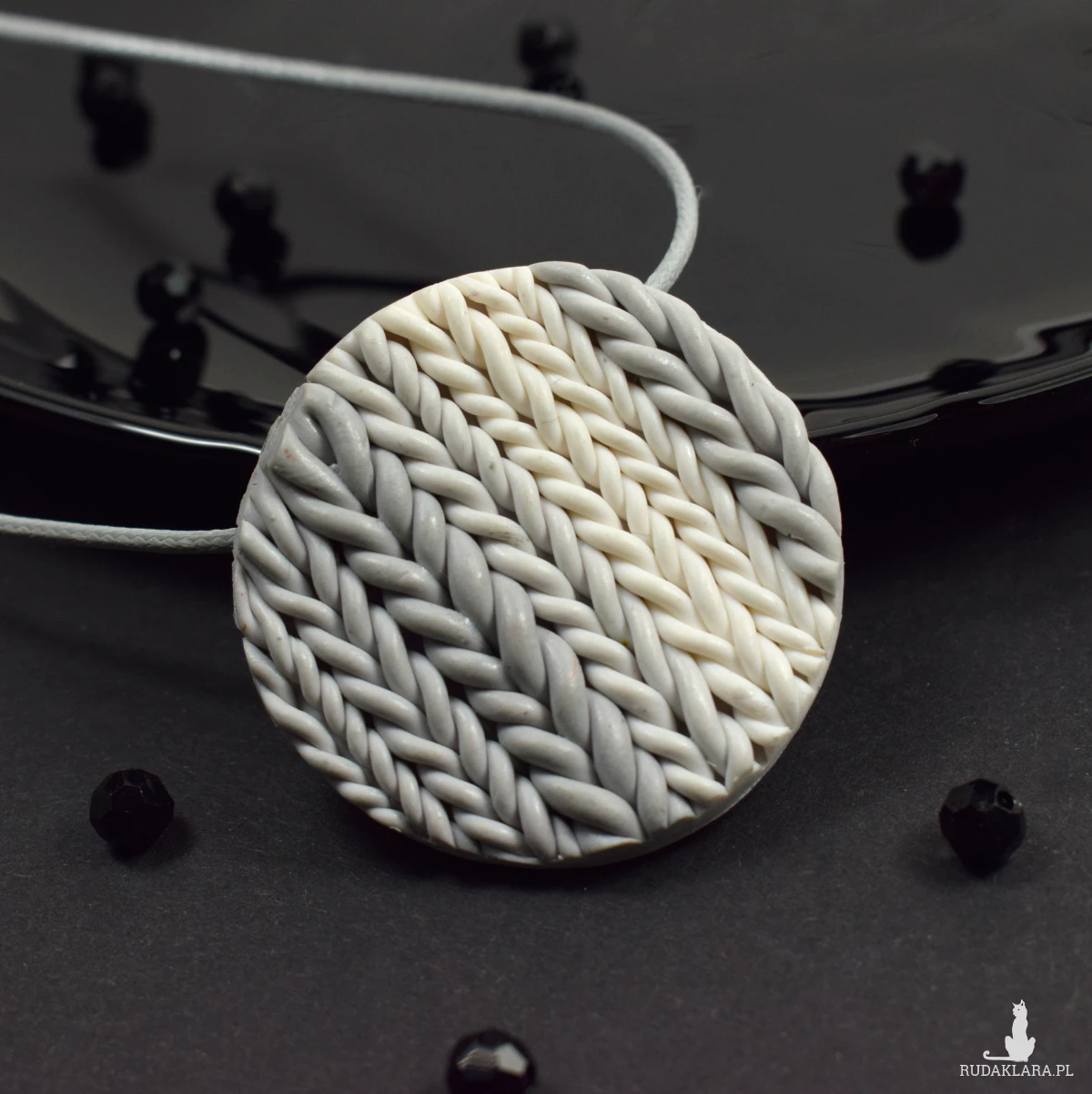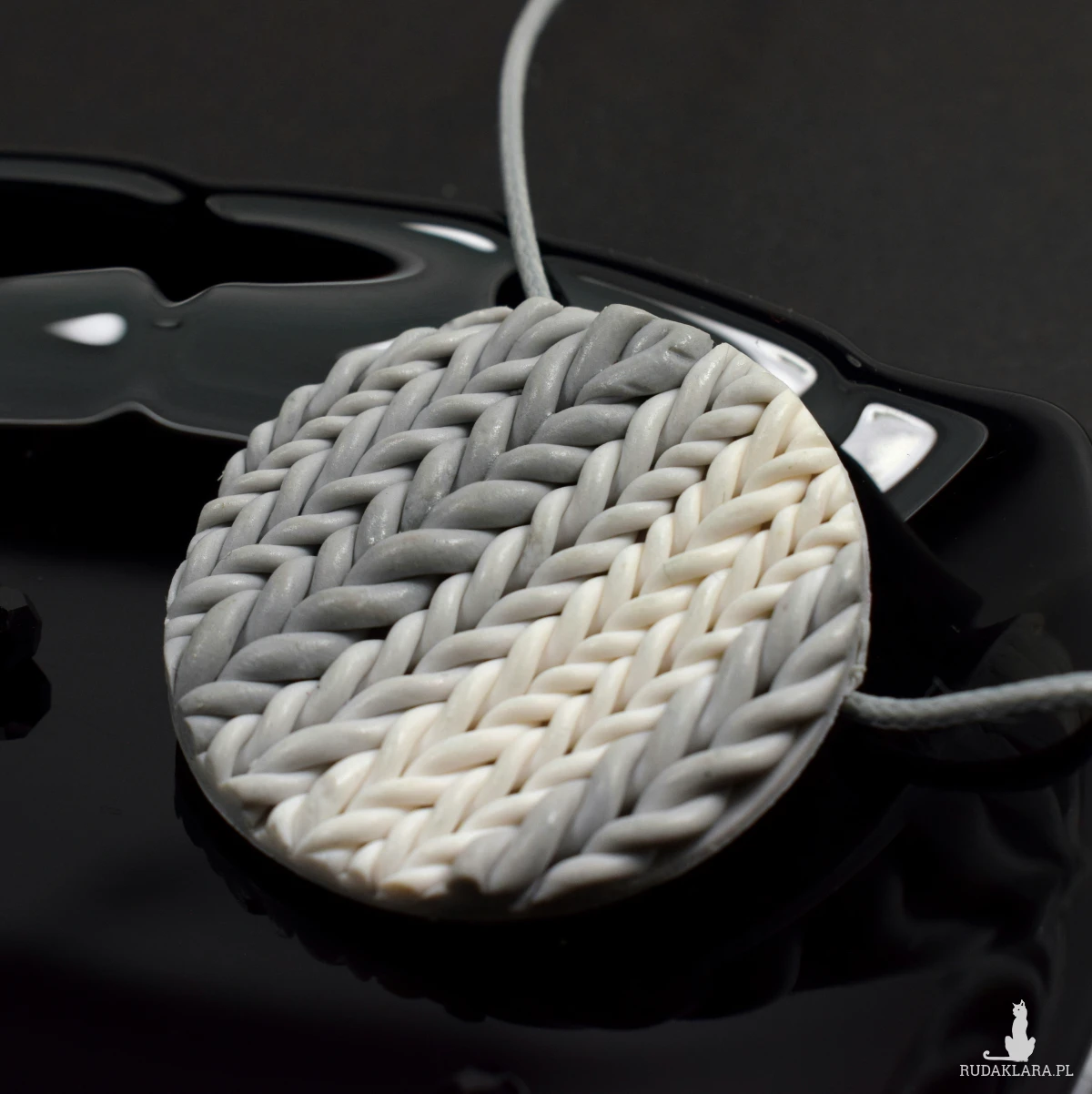 Wyjątkowy i bardzo oryginalny wisiorek w odcieniach szarości i bieli.