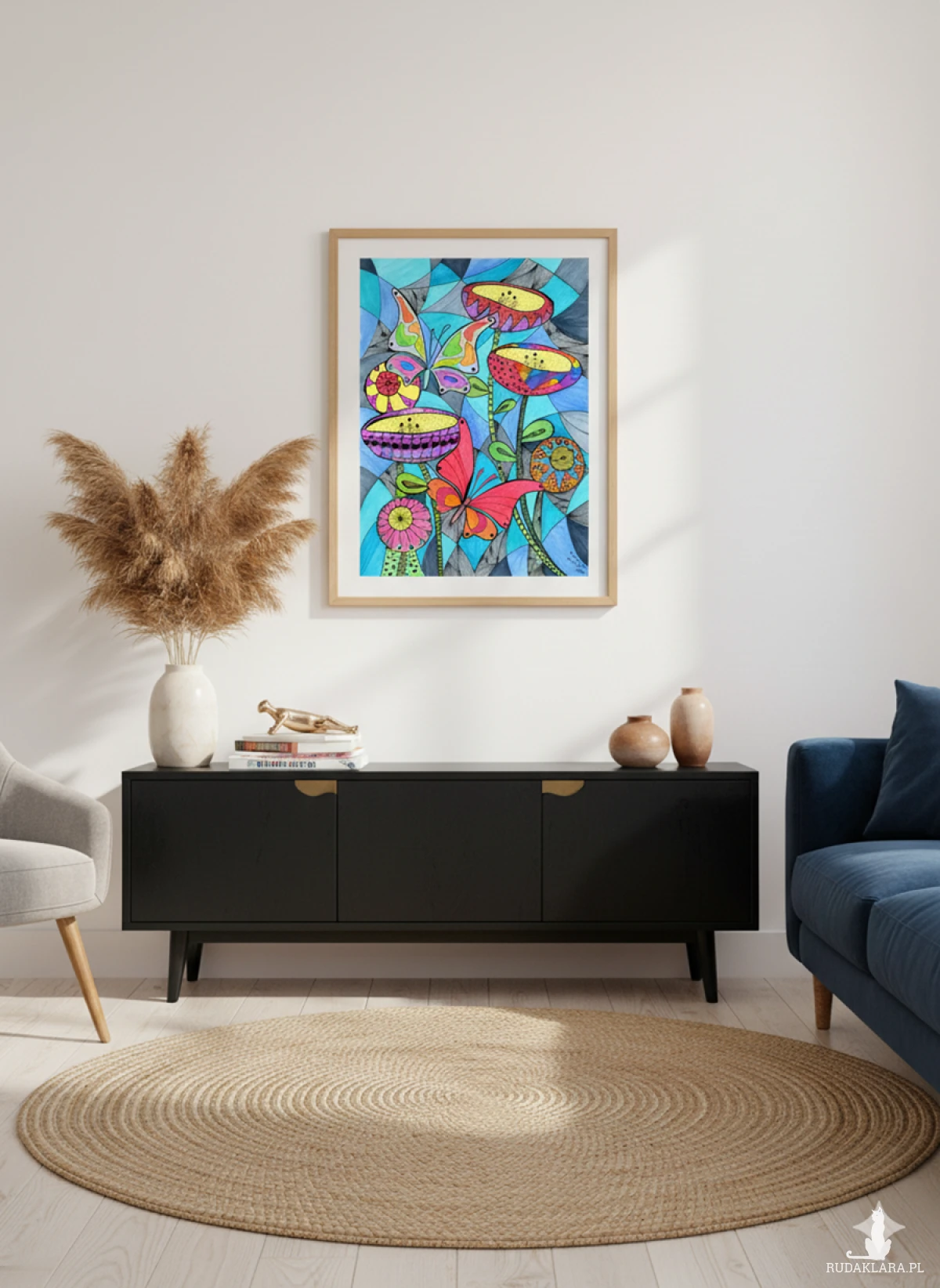 Wydruk autorskiego rysunku na satynowym papierze o gramaturze 200g/m2 - sprzedawany bez ramki - rysunki w ramkach na zdjęciach to wizualizacje.