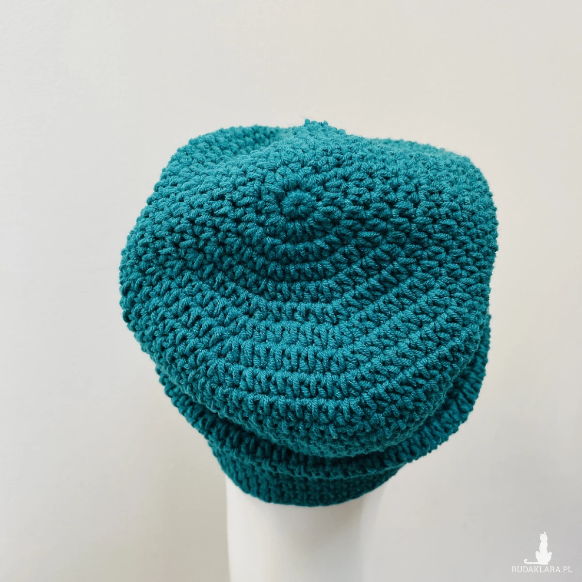 Czapkę przejściową wykonałam z wysokiej jakości włóczki bawełniano-akrylowej, która zapewnia wygodę noszenia przez cały dzień.