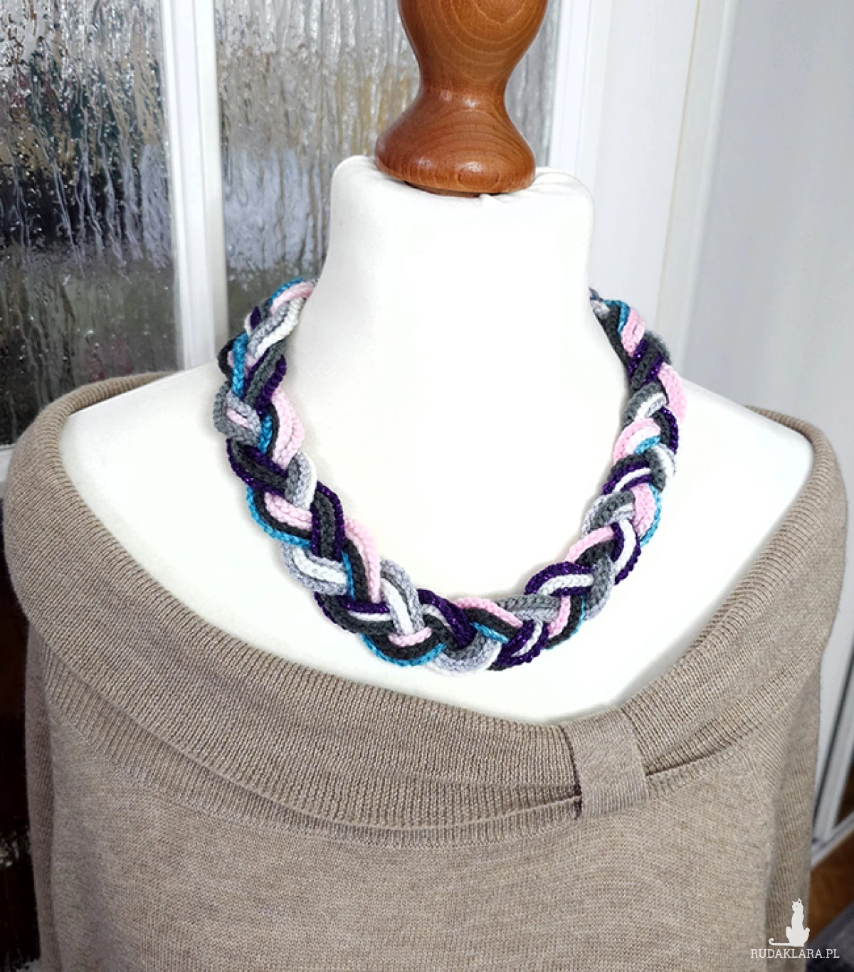 5777 Ręcznie robiony naszyjnik - warkocz w kolorach pastelowych.