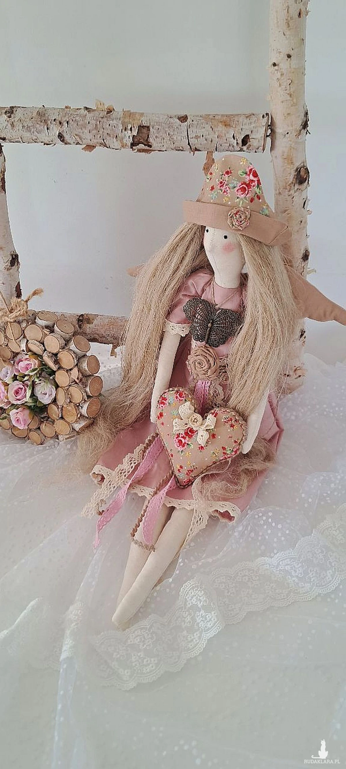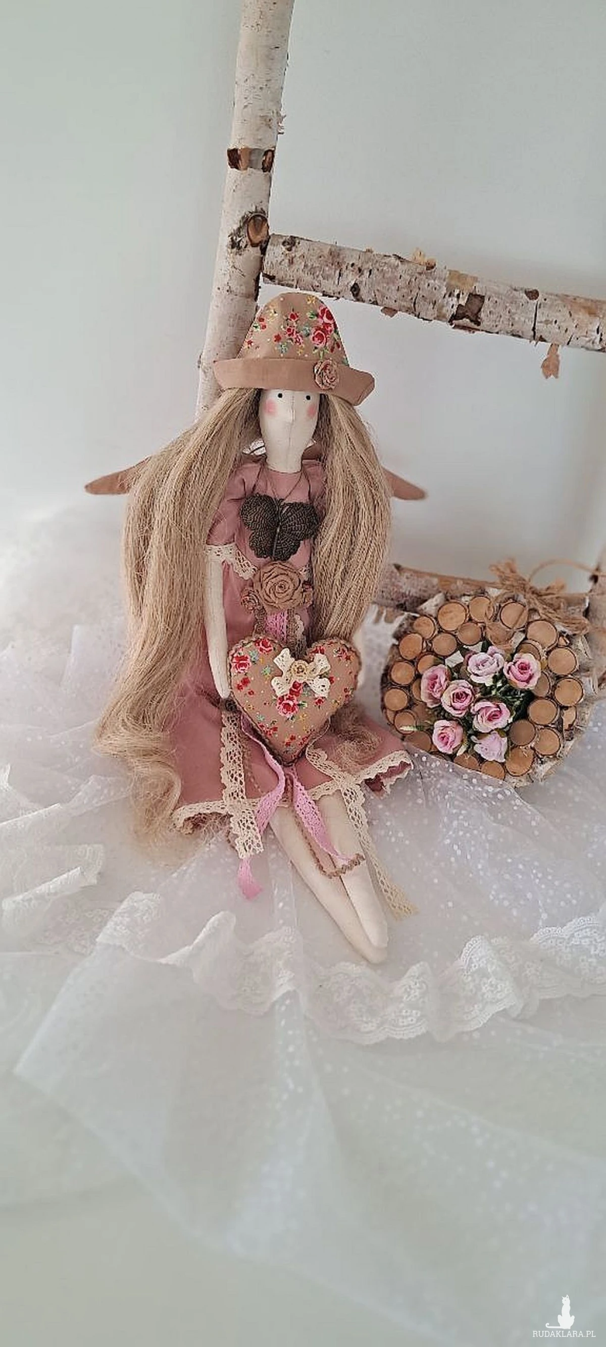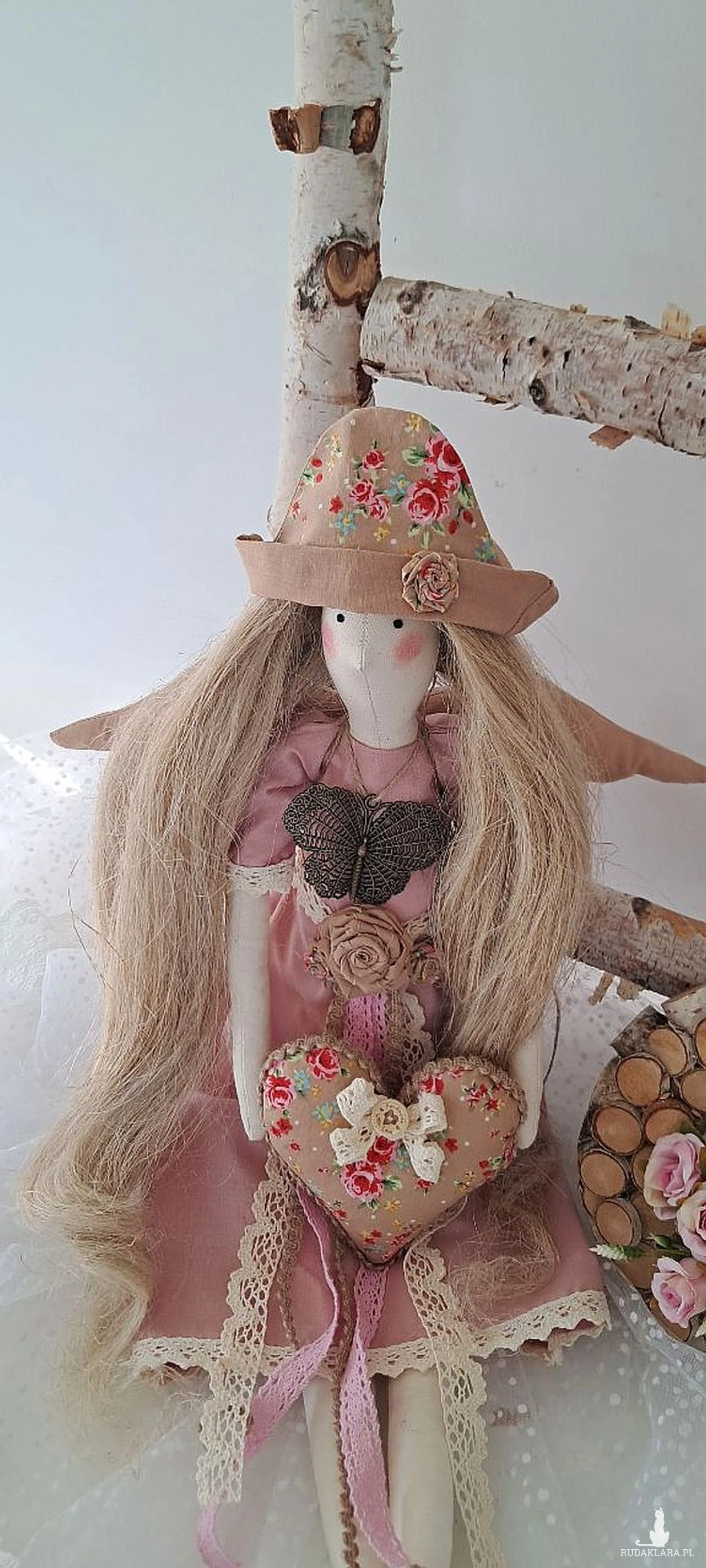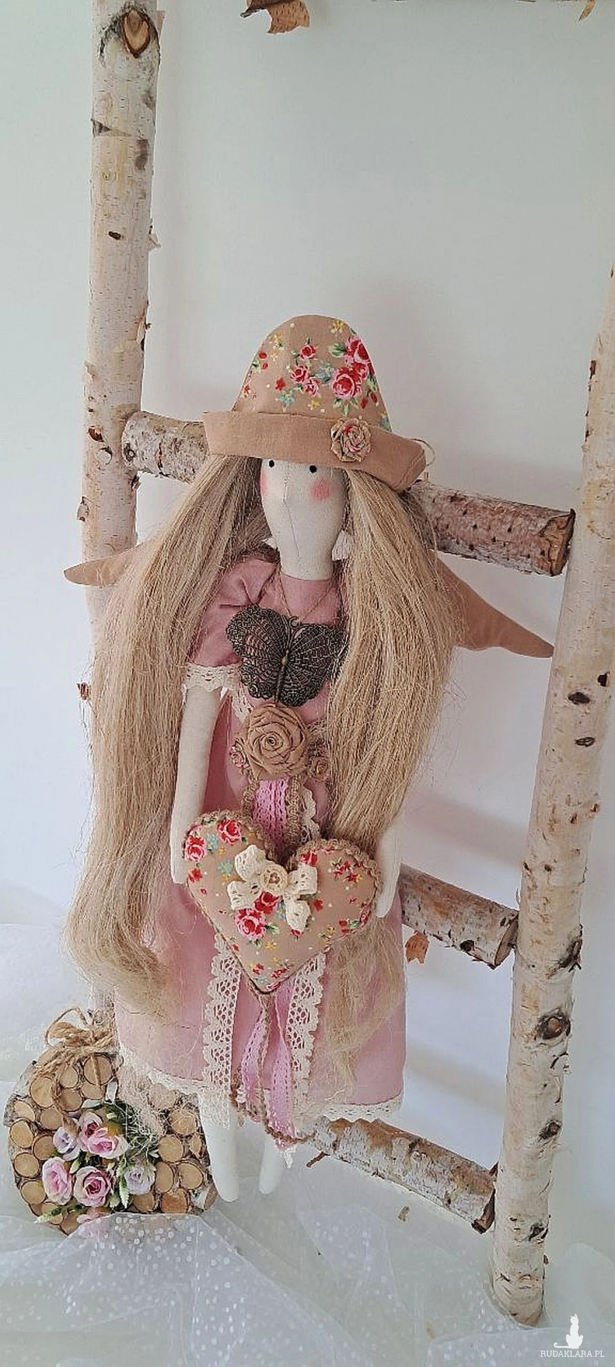 materiałowe również wykonane przeze mnie. W rączce trzyma serduszko